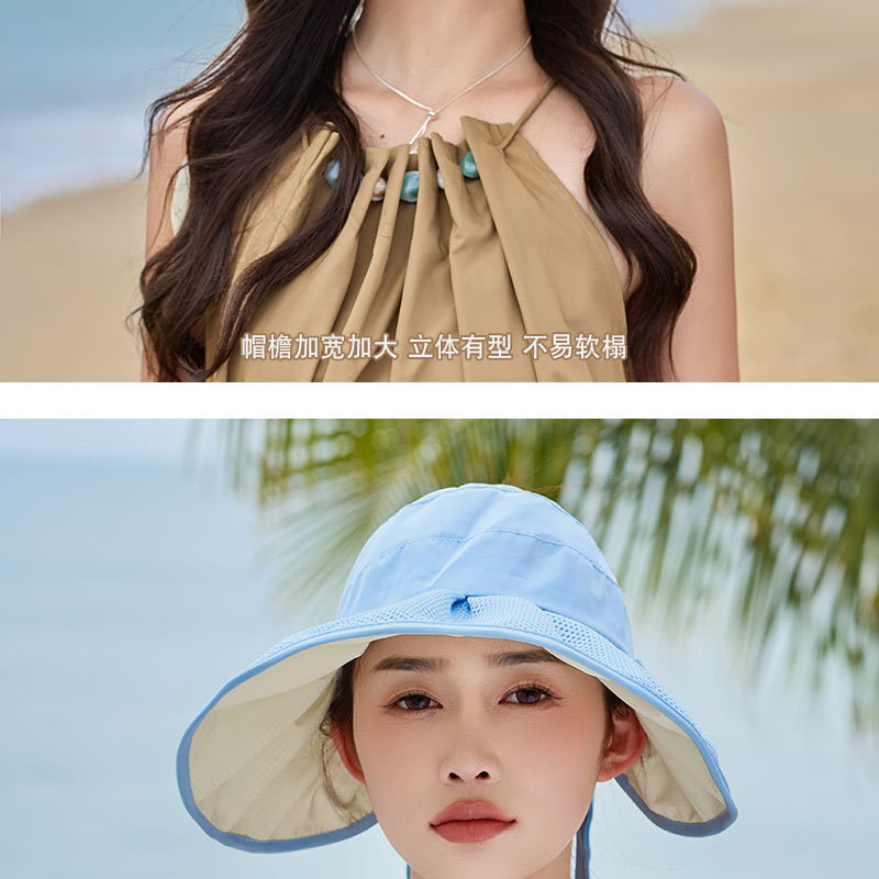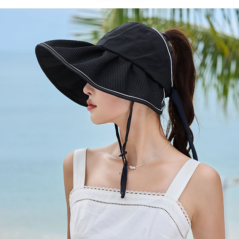 新しい日焼け止め帽子を卸売りしている女性の夏の通気性二重メッシュの空トップ漁師帽の大きなつばは紫外線防止ビーチ帽を持っている