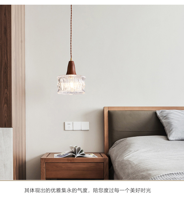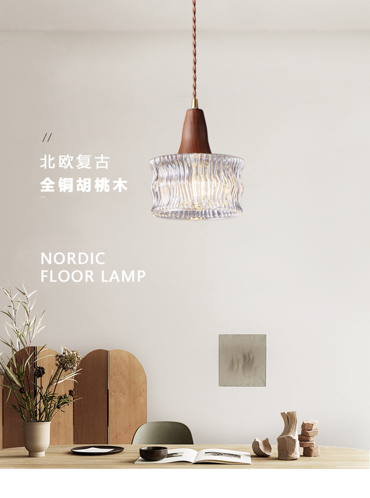 中古风卧室床头吊灯胡桃木复古吧台餐厅灯日式侘寂风南瓜氛围吊灯