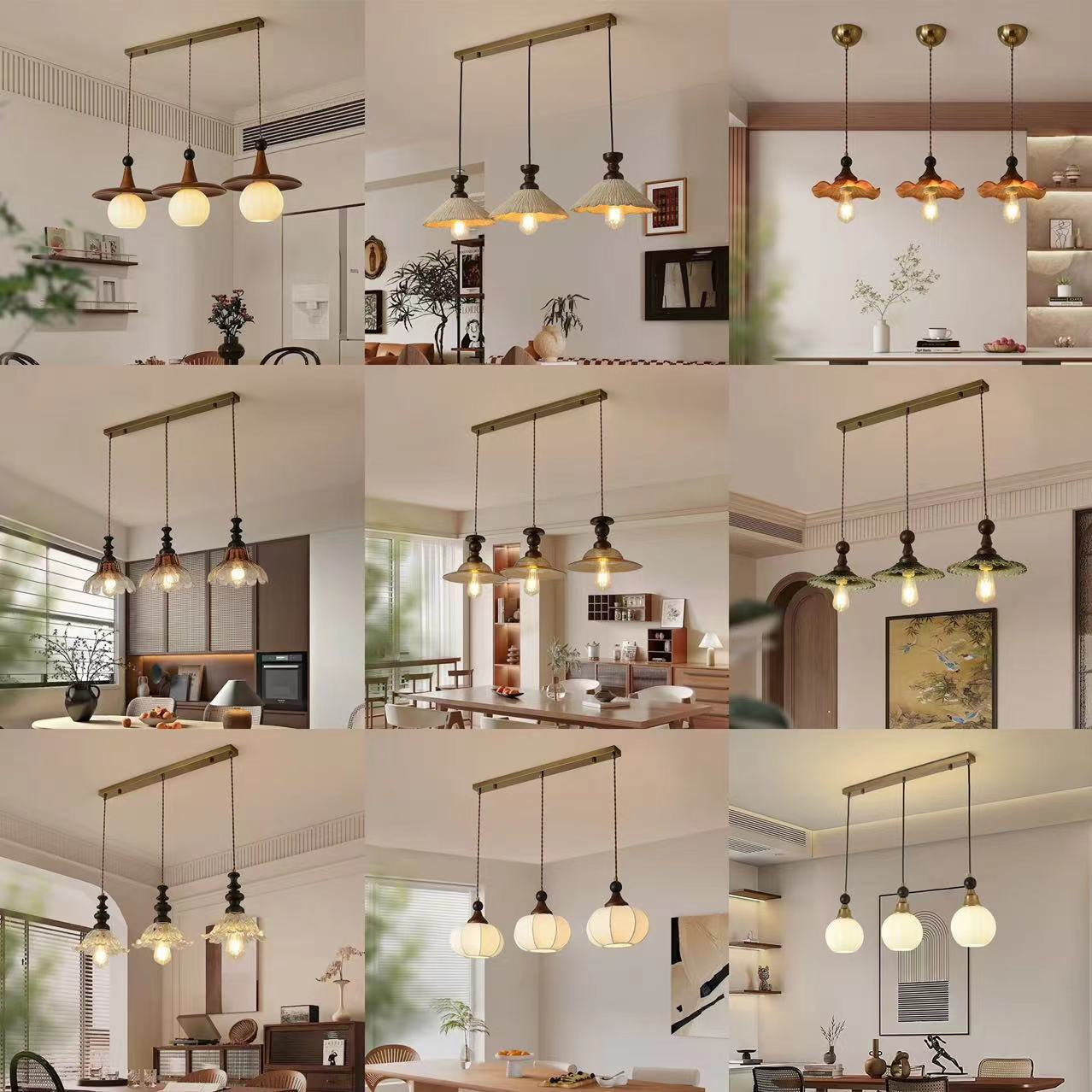 中古風レストランシャンデリアフレンチ三頭カフェテーブルスタンドアメリカンレトロ雰囲気感ガラス照明器具
