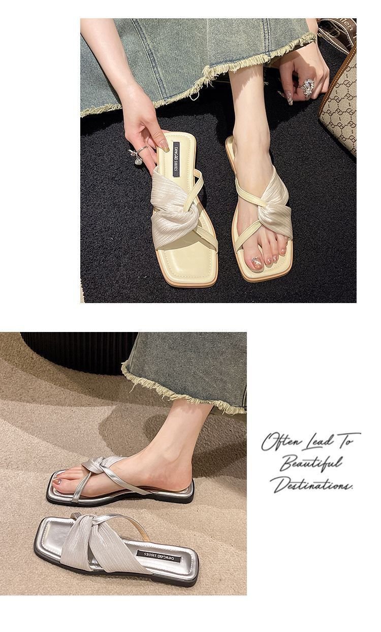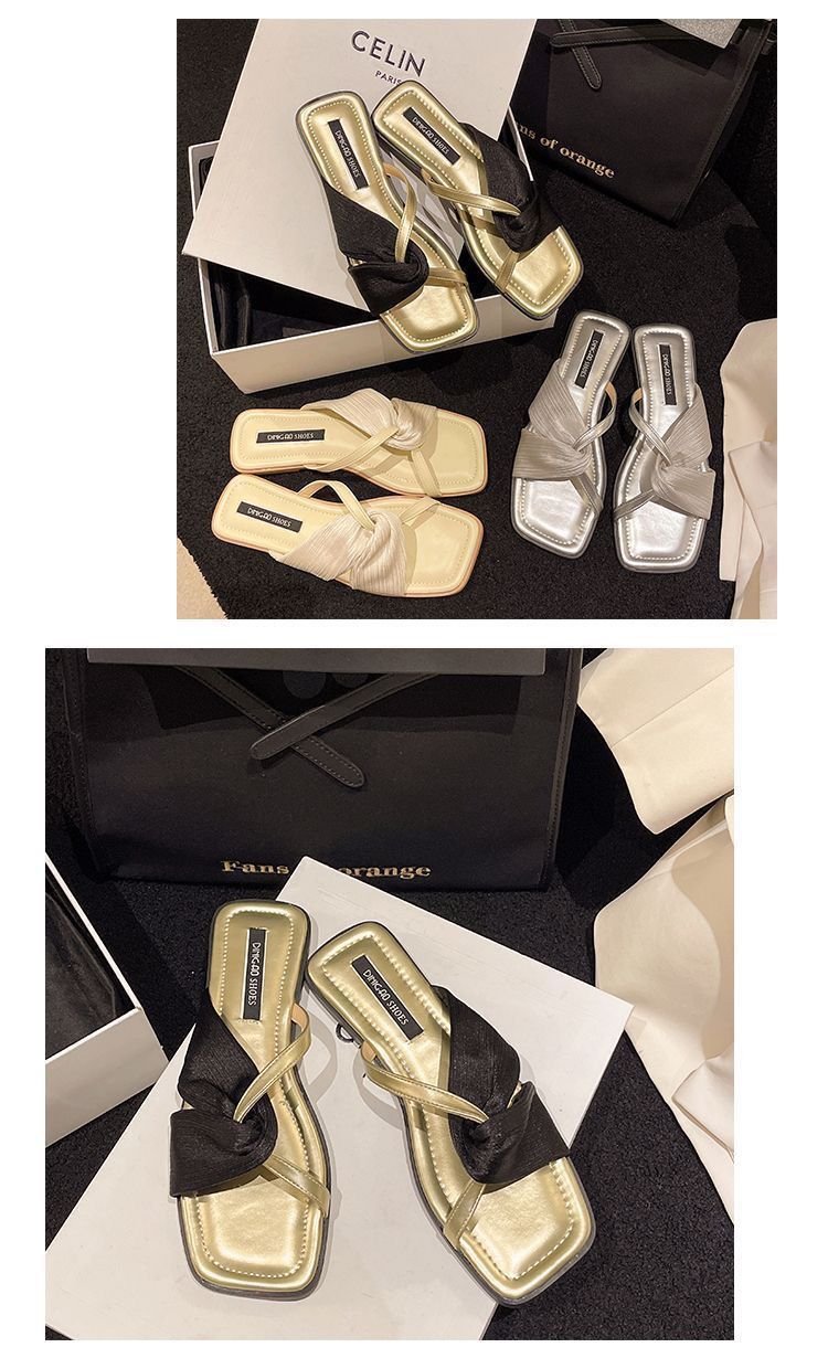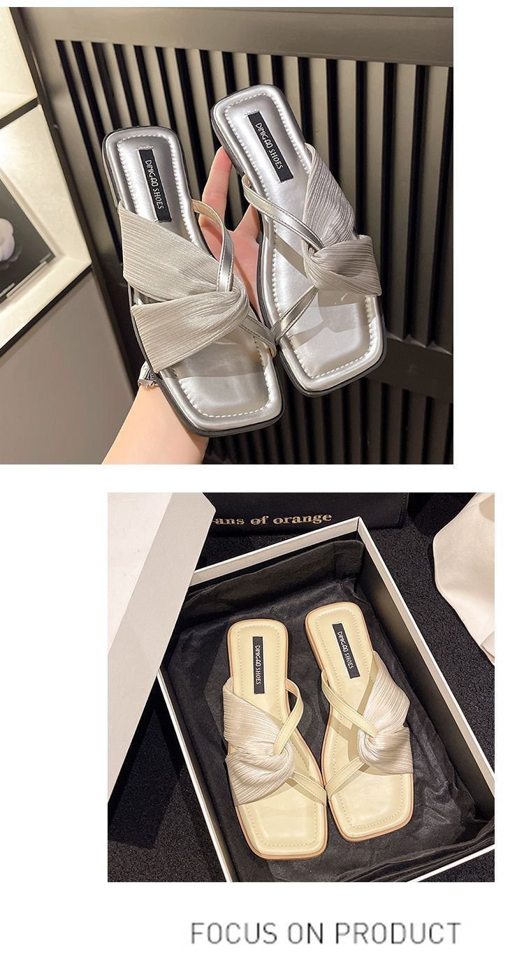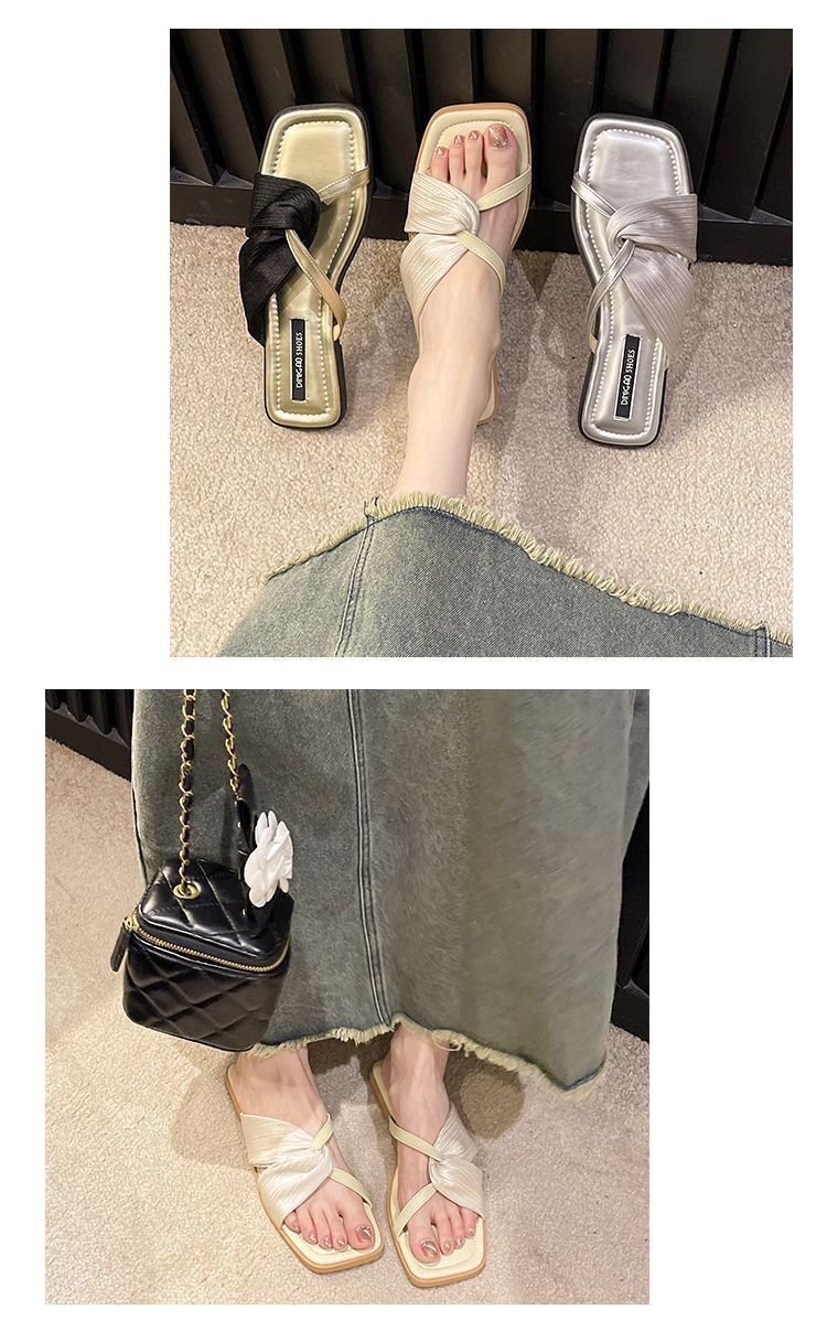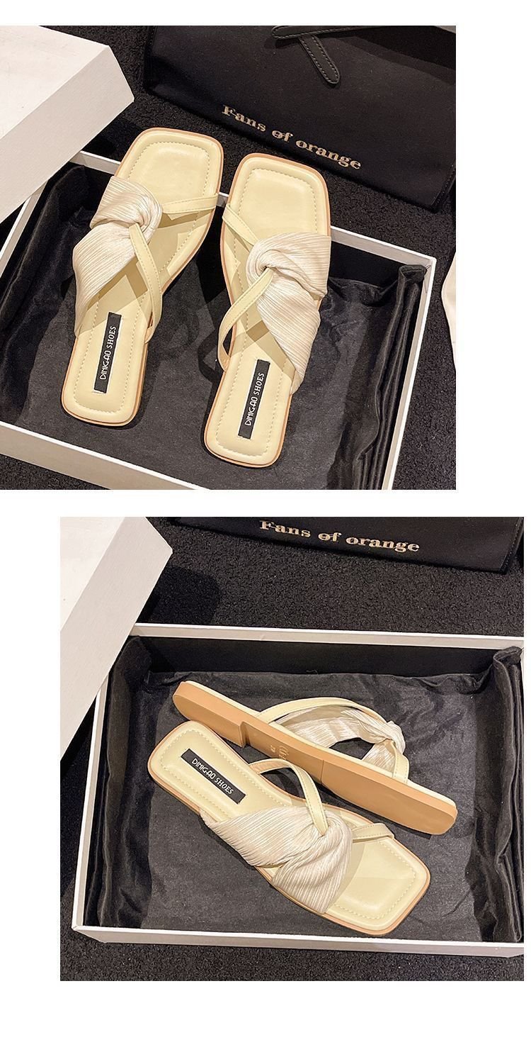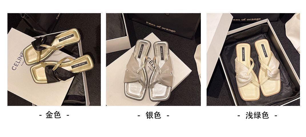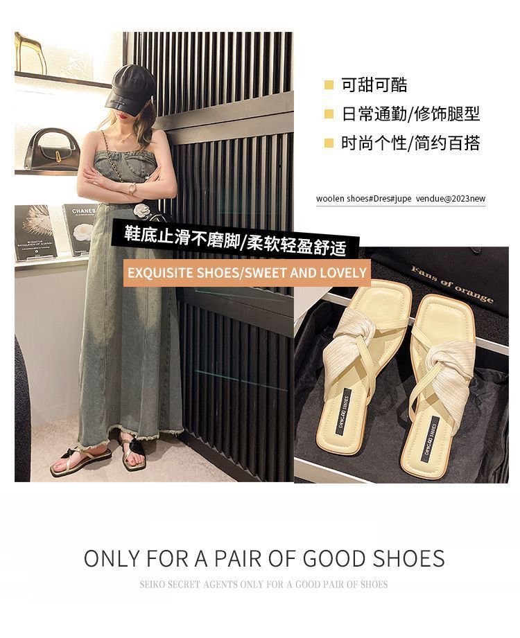 フレンチレトロワンラインサンダル女性用 2025 新しいアウターウェアスクエアトゥ織りミュールシューズソフトソールビーチスリッパ