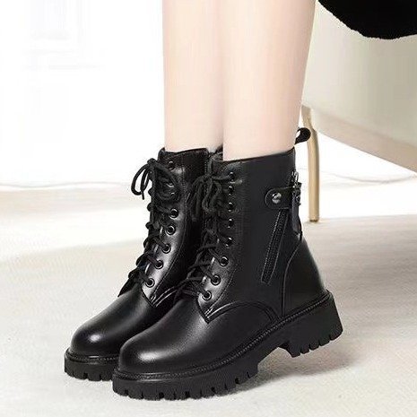 ソフトレザーとベルベットのマーティンブーツ、レディースコットンブーツ、2025秋冬新作厚底暖かいショートブーツ、フラットソール、多用途の厚手のコットンシューズ