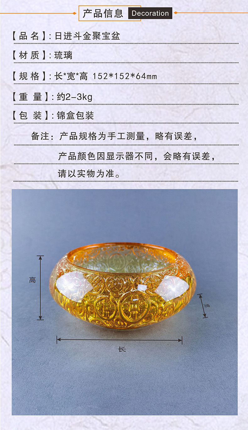 メーカー直売古法瑠璃玄関客間家庭吉祥装飾贈り物佳品日進闘金聚宝盆