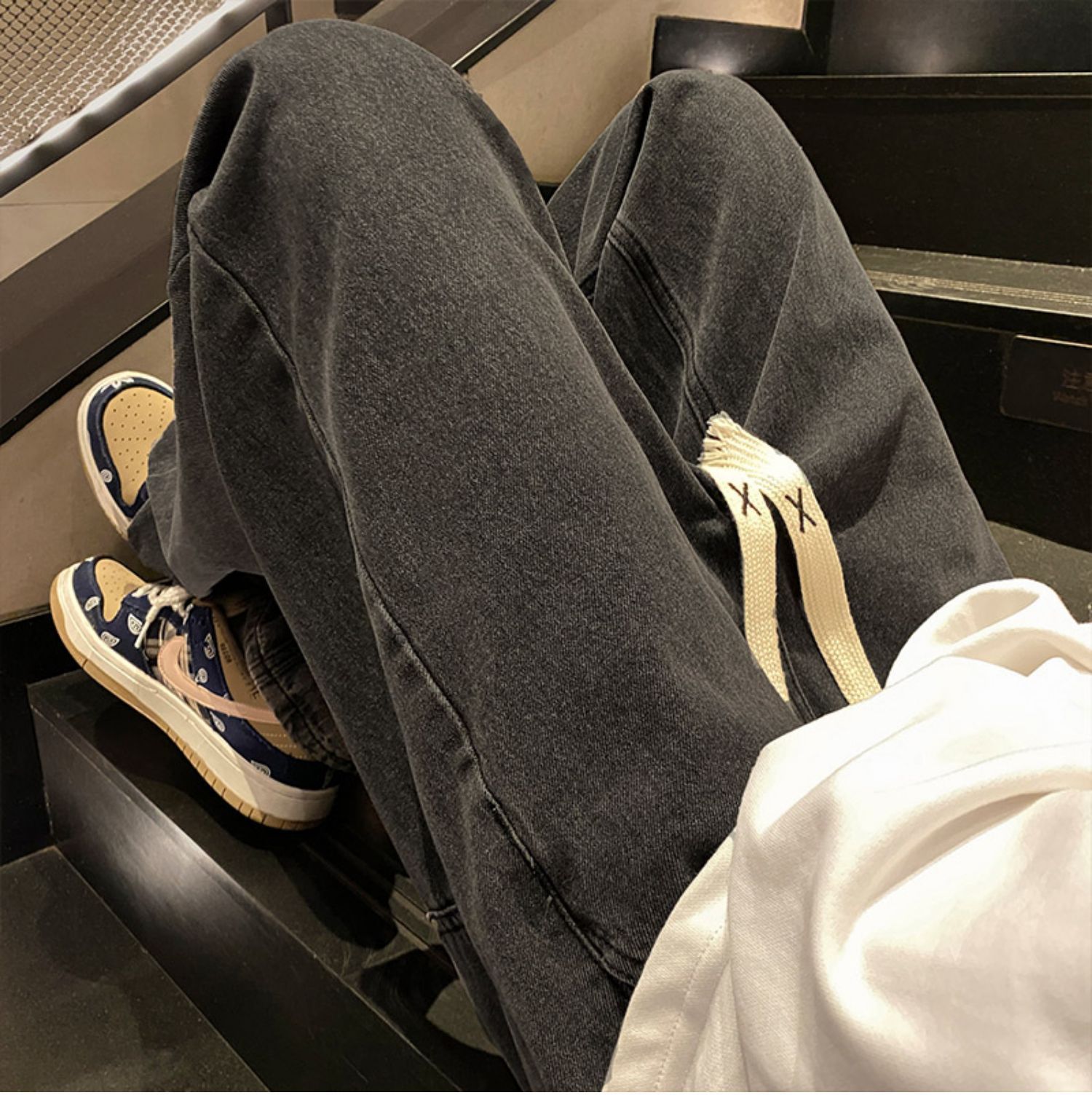 2025新型夏の氷糸弾力ズボン男性の薄いファッションブランドのストレートでゆるい運動レジャーズボン