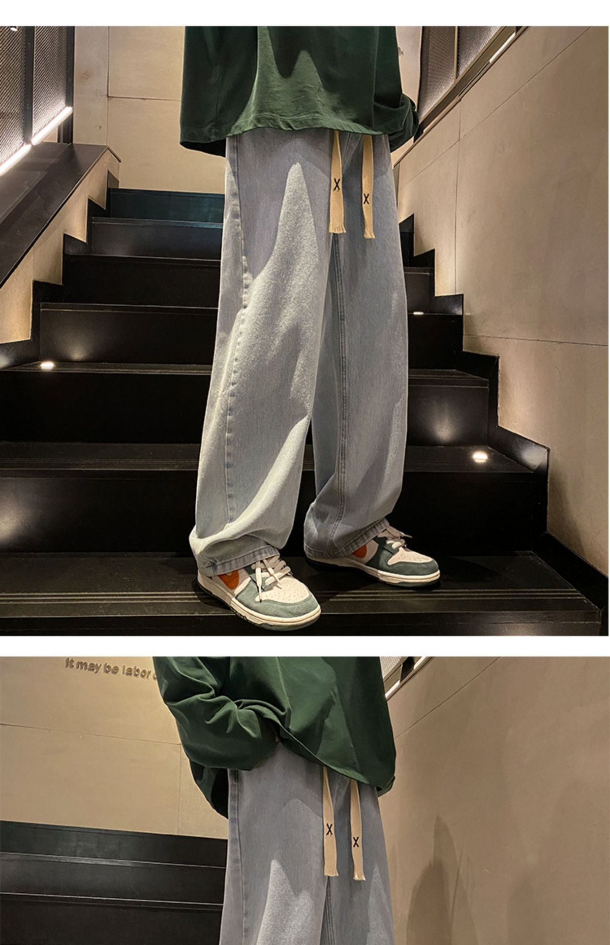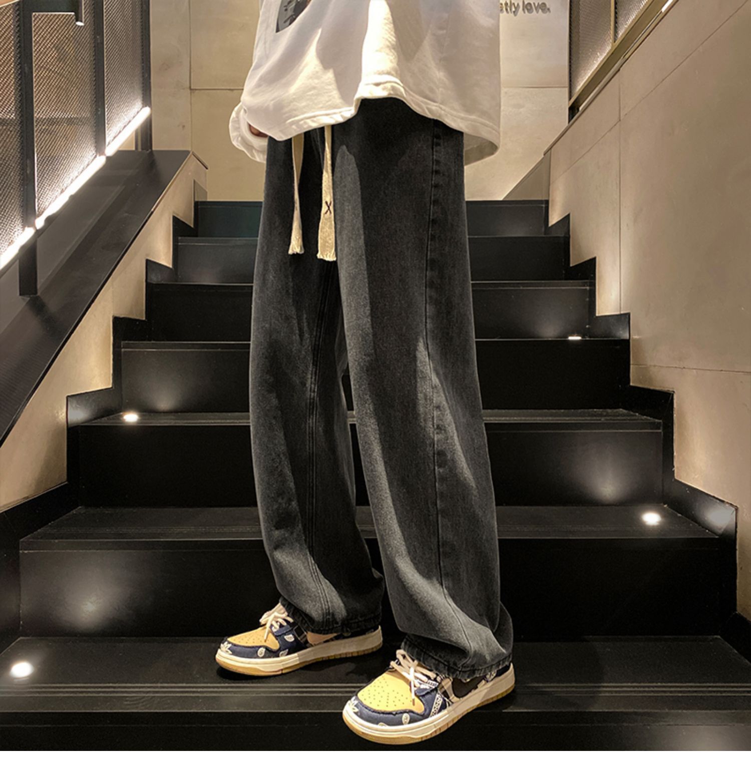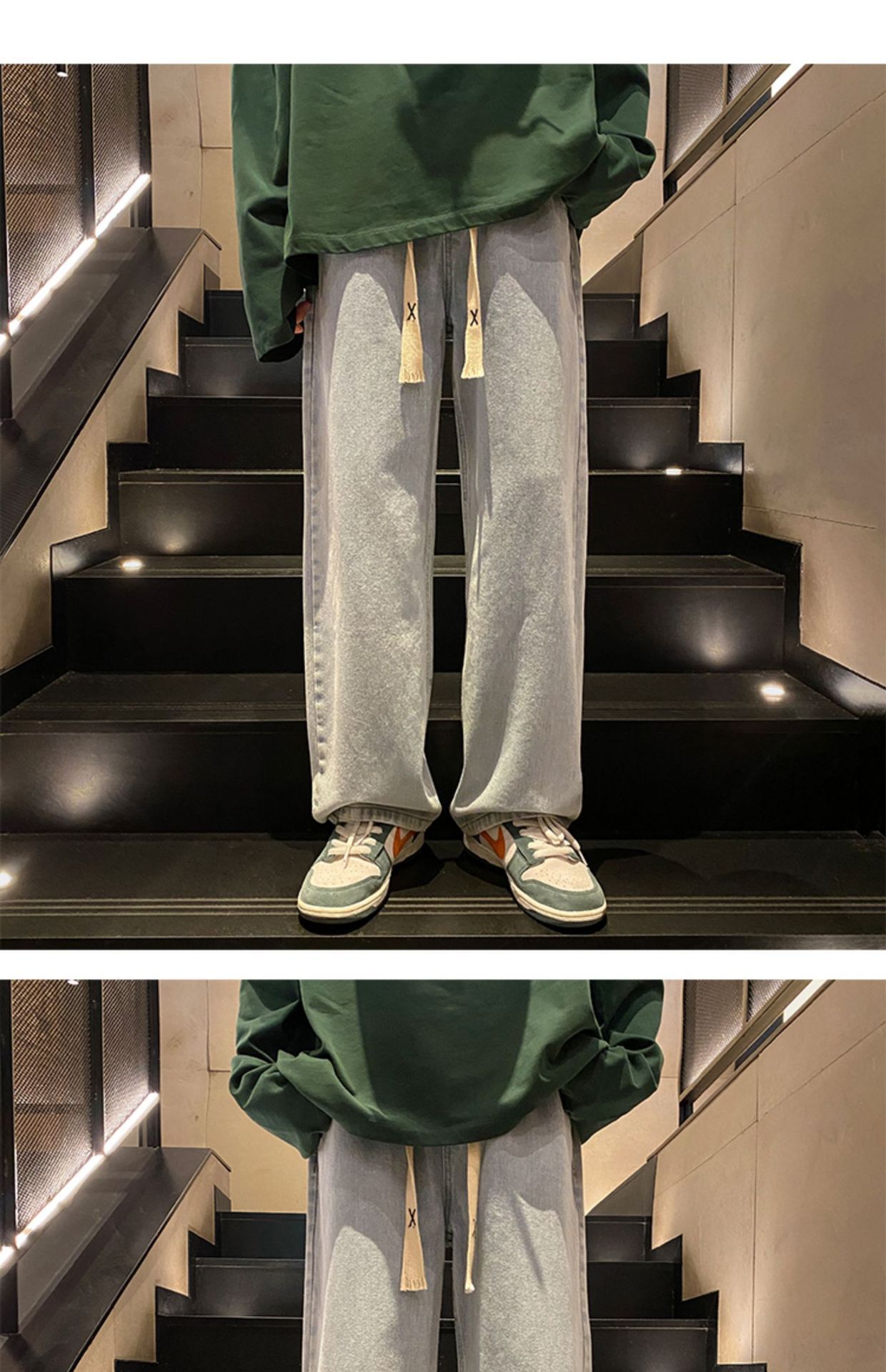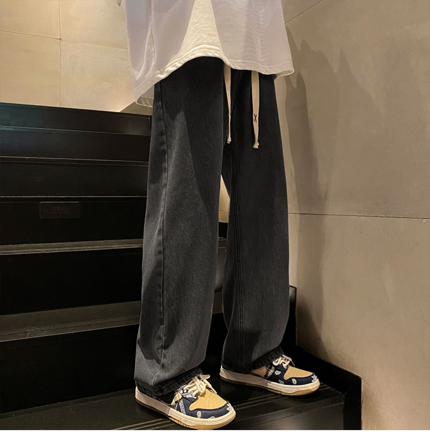 男女カップルは夏の薄い氷糸の高級感のあるワイドパンツを着て、ゆったりとしたカジュアルなズボンのストレートパンツをデザインします。