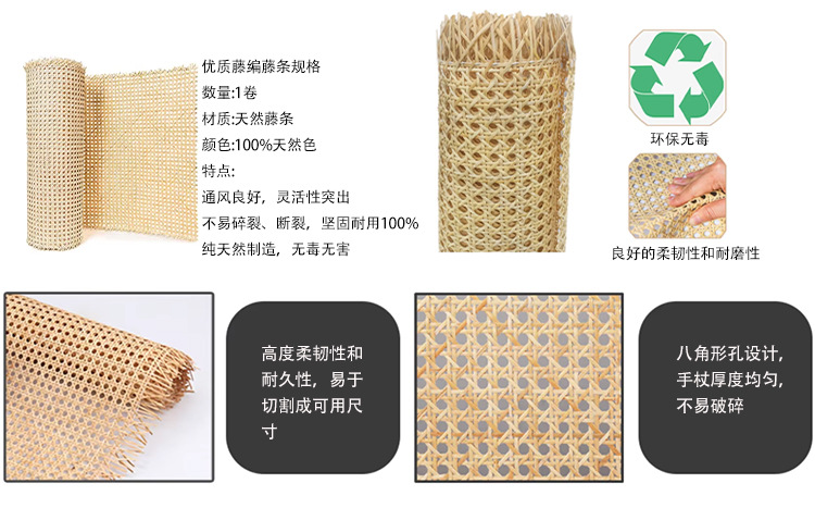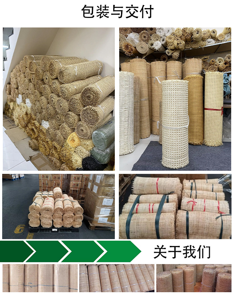 首先,从我们农场采集生藤材料(藤条),只有质量好的材料制作藤条网。然后,我们必须清洗藤条材料,让它们在阳光下晒干。藤条编织由经验丰富的工匠手工编织而成。我们制造的类型有六角形、方形、封闭型,还有许多漂亮的类型。