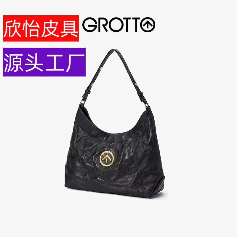 GROTTO個楽25年新型シンプルカジュアルしわ本革放浪子母特包斜めショルダー片肩ソフトバッグ