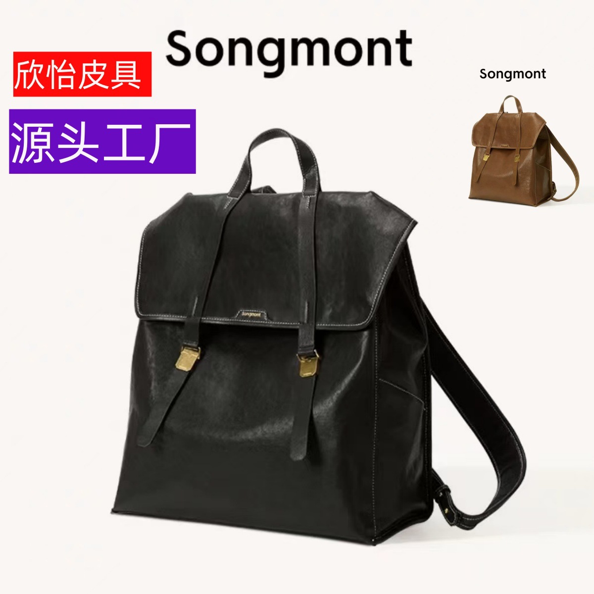 Songmont山下有松循迹系列大号双肩包无性别复古植鞣皮16寸电脑包
