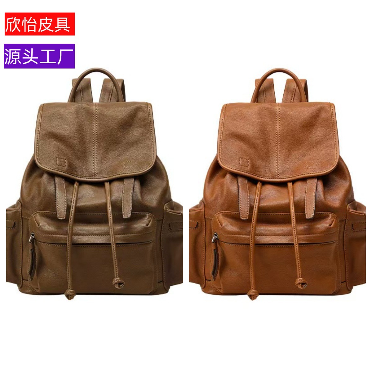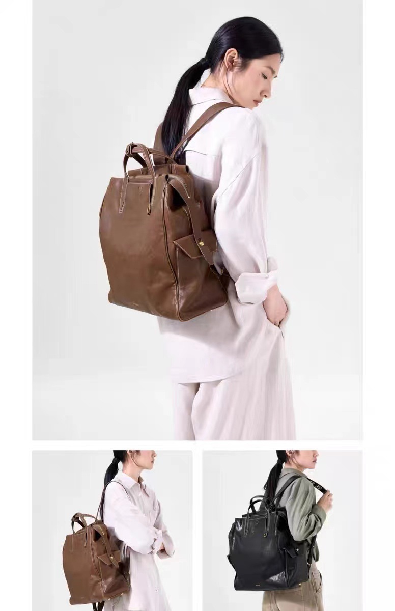 裘真植鞣羊皮自游双肩包旅游轻便休闲复古真皮大容量背包男女同款
