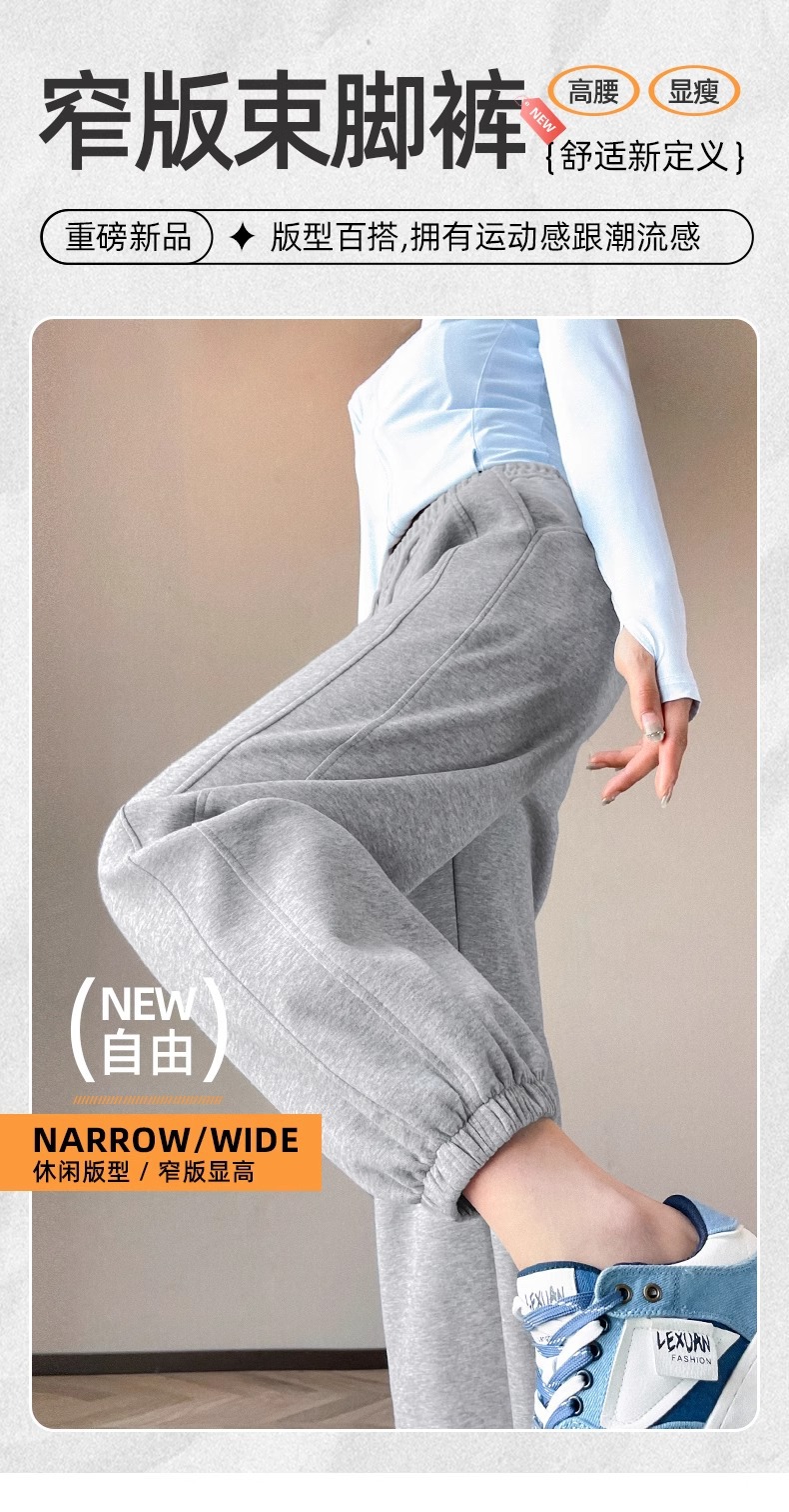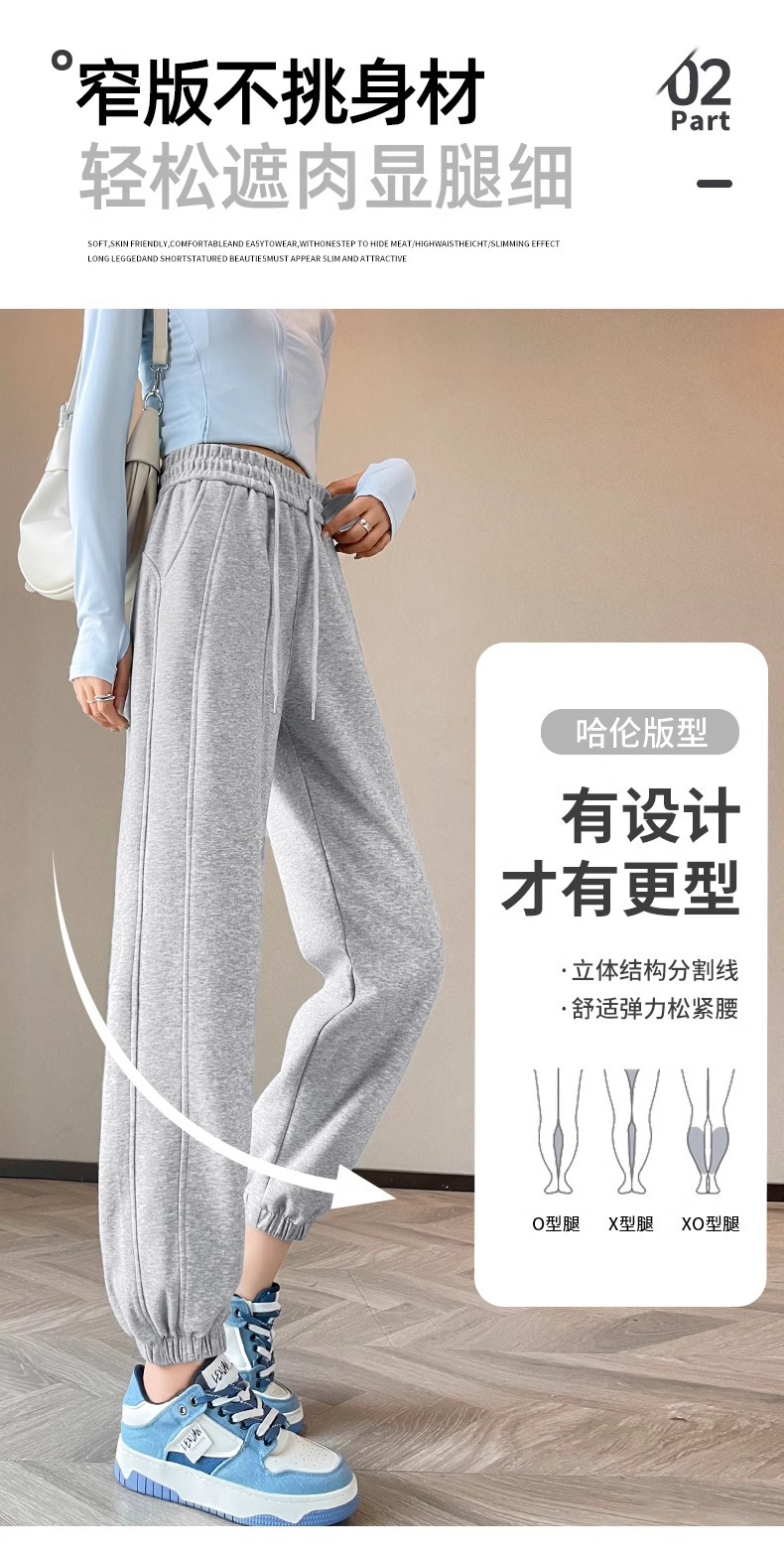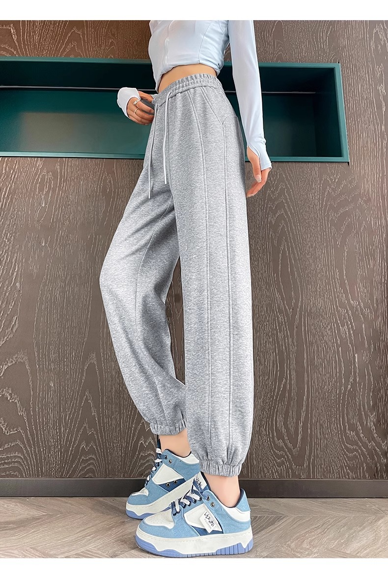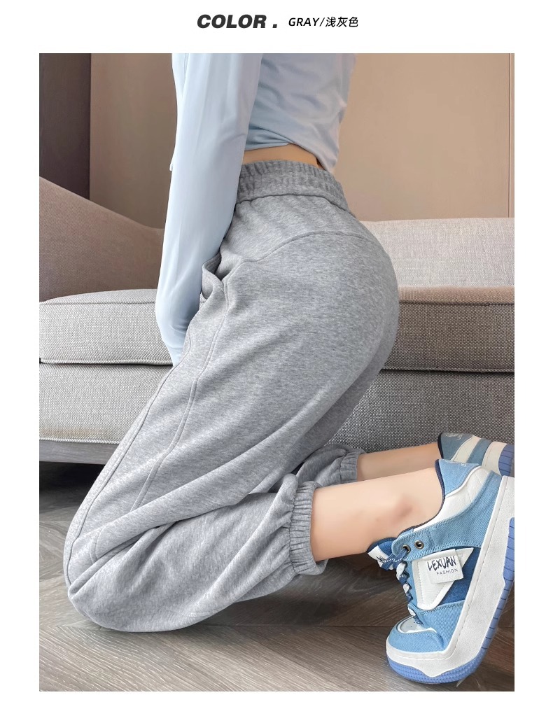 灰色のスポーツズボンの女性の春秋の薄いタイプの2025新型のゆったりしているのが見えます。
