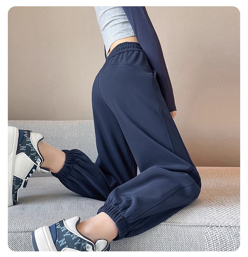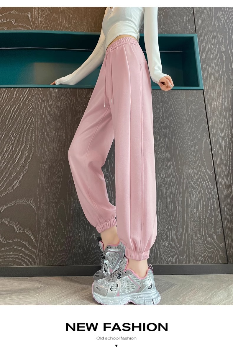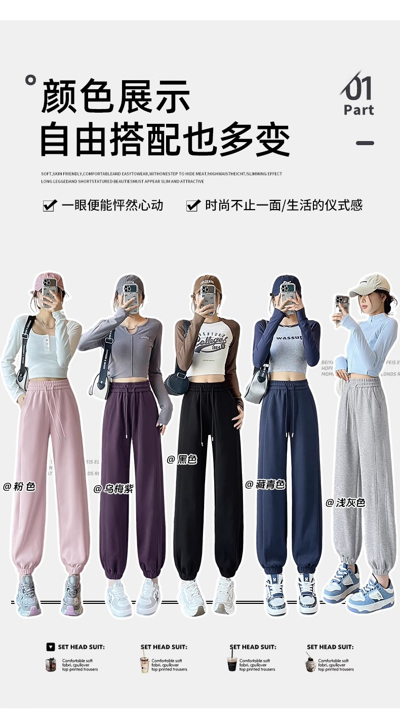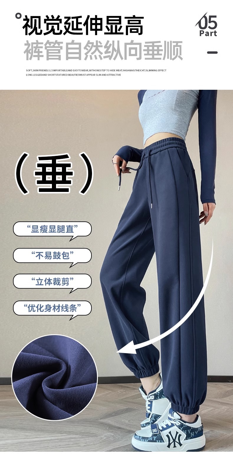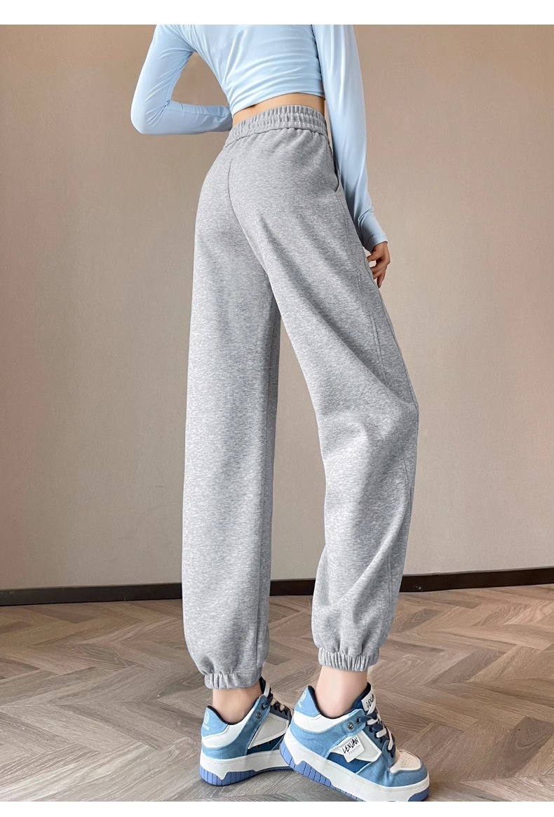 灰色のスポーツズボンの女性の春秋の薄いタイプの2025新型のゆったりしているのが見えます。