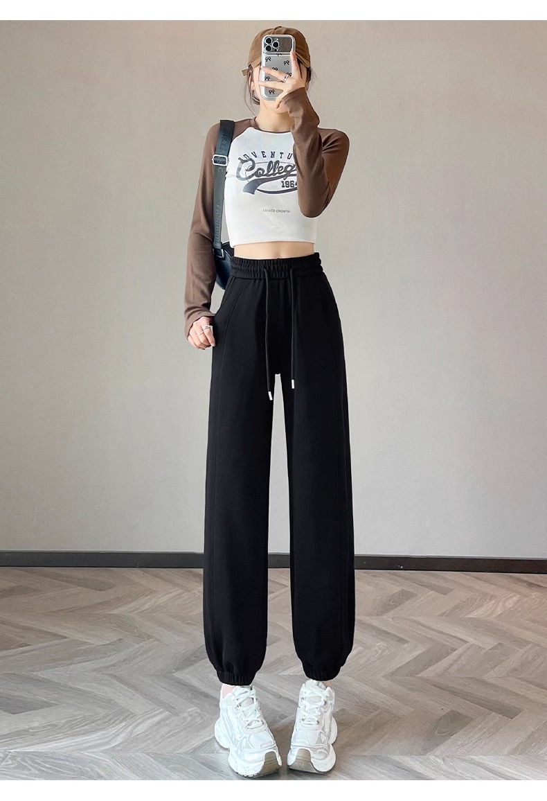 黒のスウェットパンツの女性の春と秋のスタイルプラスベルベット 2025 新しいルーズレッグ大きいサイズ脂肪 mm 小さなカジュアルスウェットパンツ