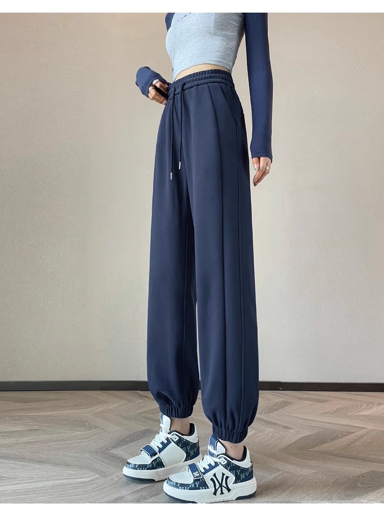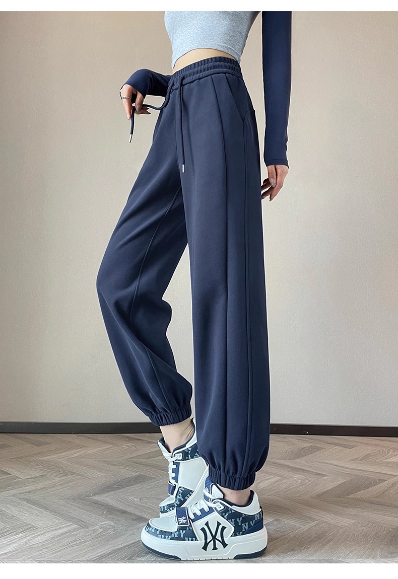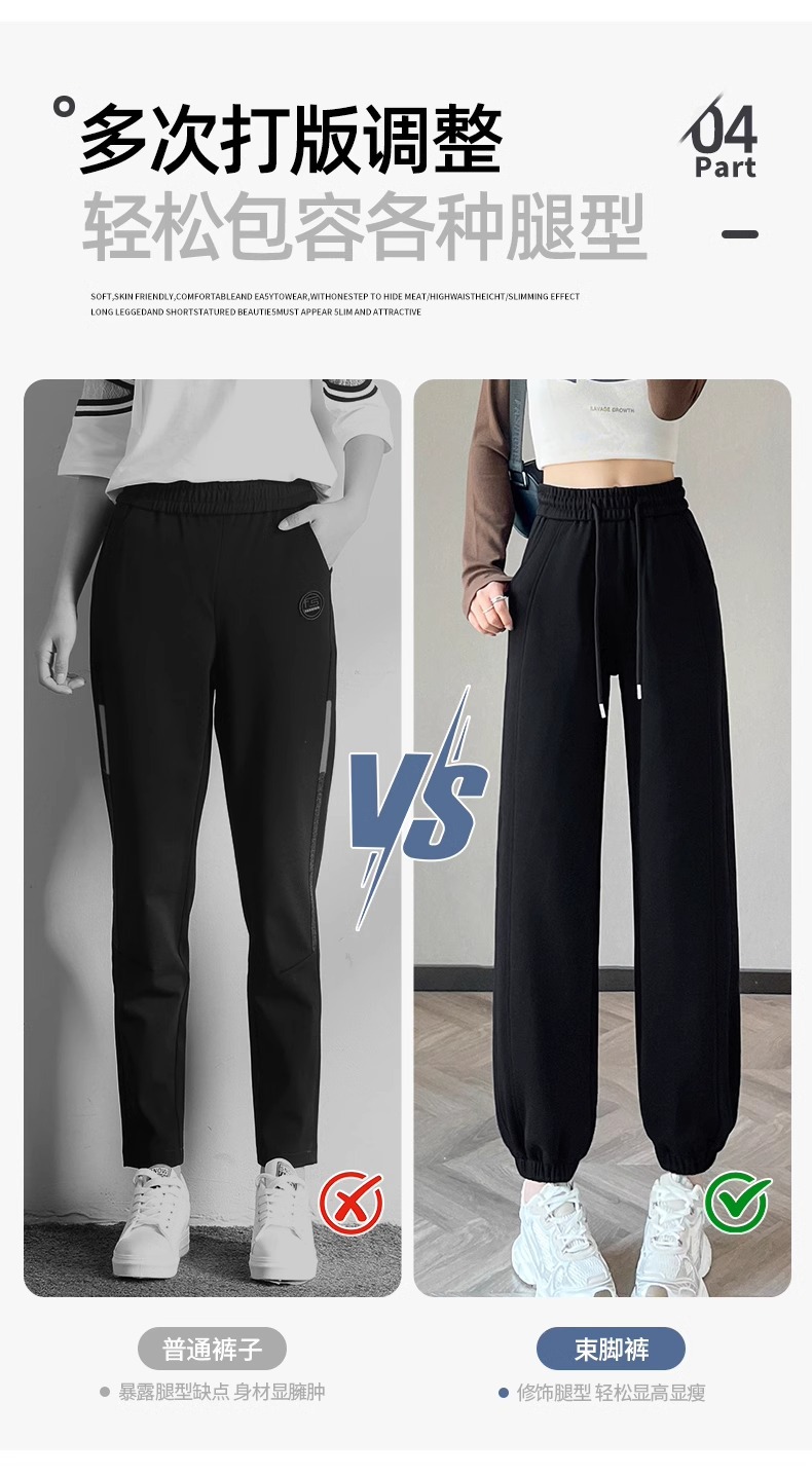 腰が高くてやせているスポーツズボンの女性2025の新型の流行のカジュアルな束の足の衛のズボンの春秋の薄い金の小さい体の灯籠のズボン