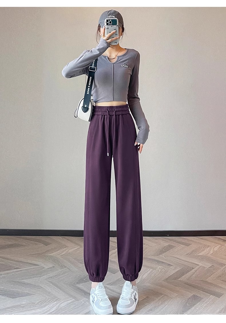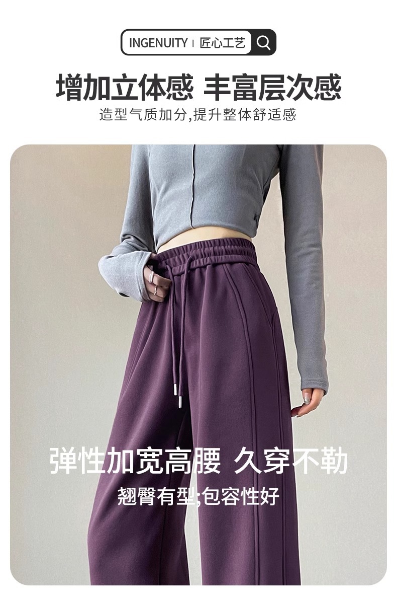 烏梅の紫色の狭い版の広腿のズボンの女性の春秋2025の新型のまっすぐな筒のカジュアルなスポーツのズボンはやせているlulu衛のズボンを現します。