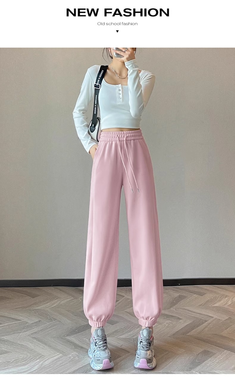女性のためのグレーのスポーツパンツ春と秋2025春と秋の新作小さなバナナワイドレッグナローストレートカジュアルパンツ