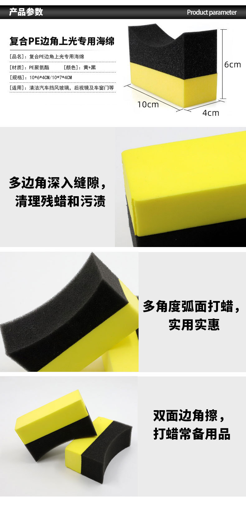 批发异形镀晶海绵擦汽车清洁抛光打蜡擦子高密度eva复合海绵块