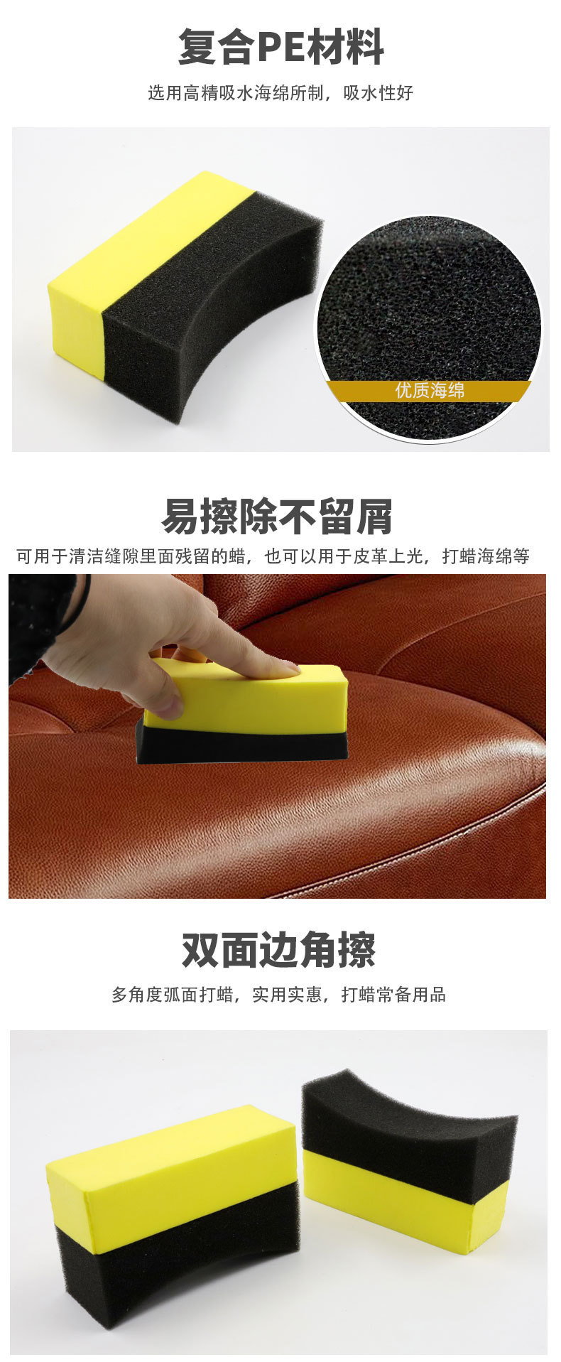 跨境专供方弧形清洁海绵抛光打蜡持久耐磨去油去污汽车清洁擦