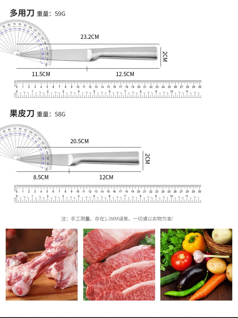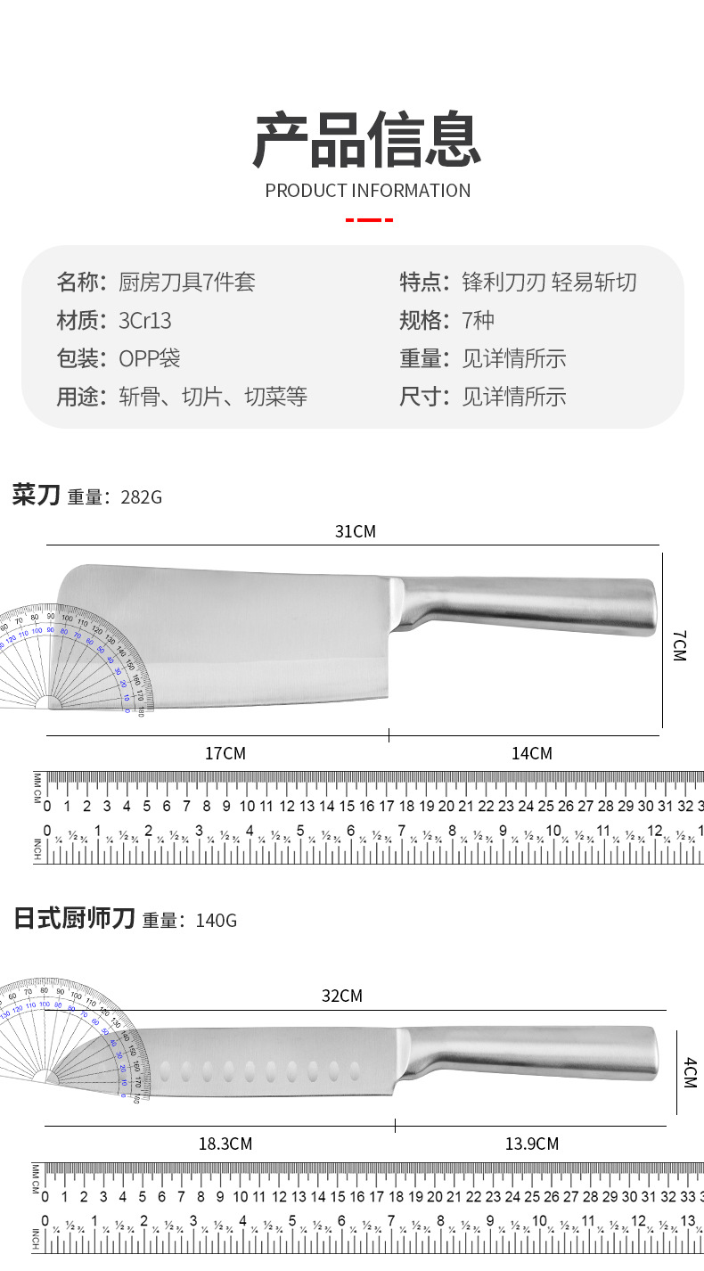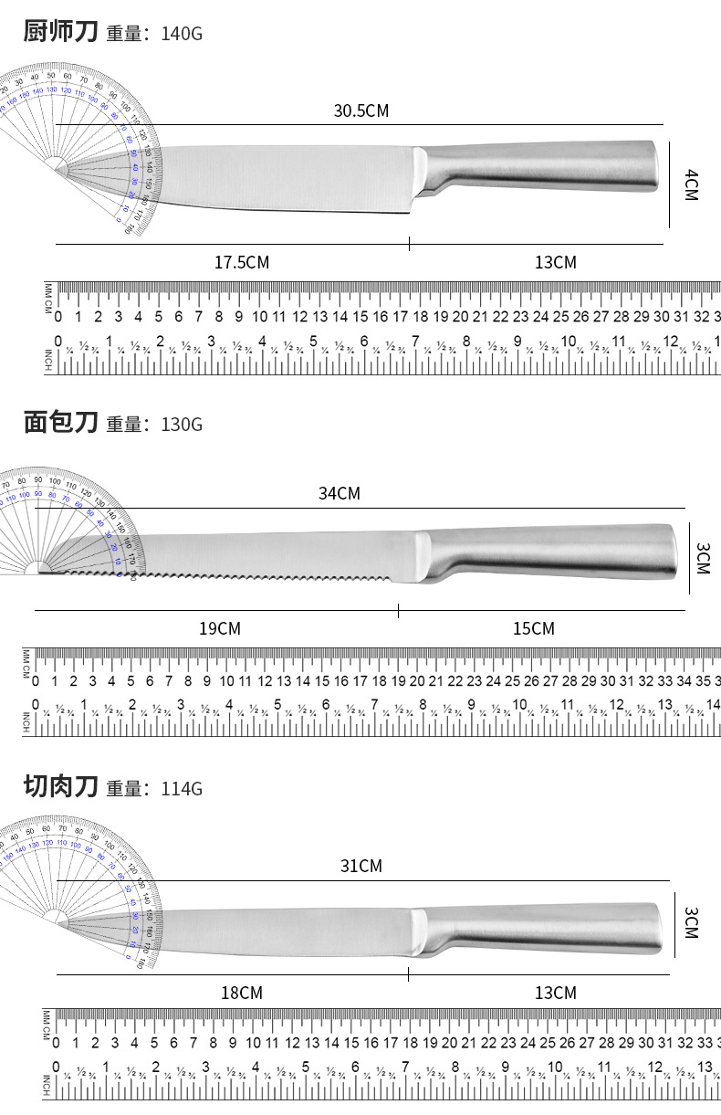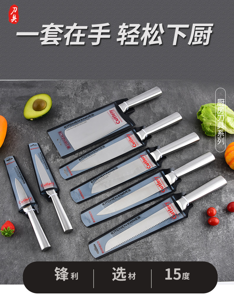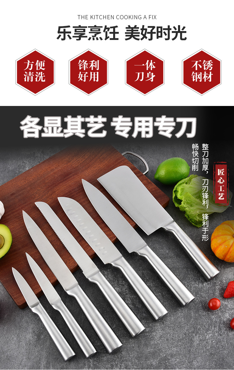 不锈钢刀具直柄空心柄刀具套装厨房套刀全焊钢柄切肉水果厨师刀