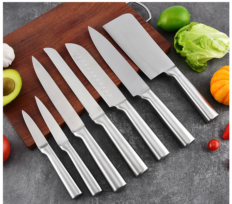 ステンレス刃物直柄中空柄刃物セットキッチンセット全溶接鋼柄肉切り果物シェフナイフ