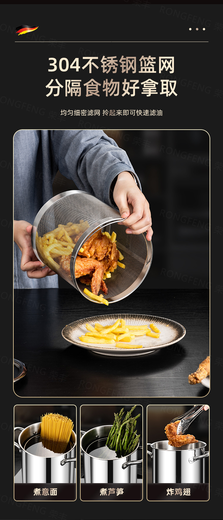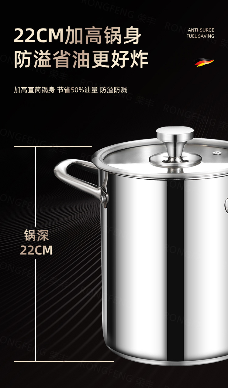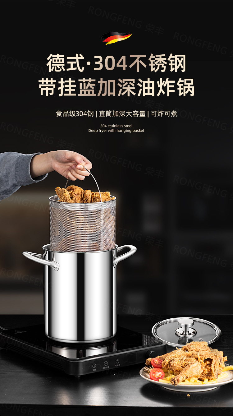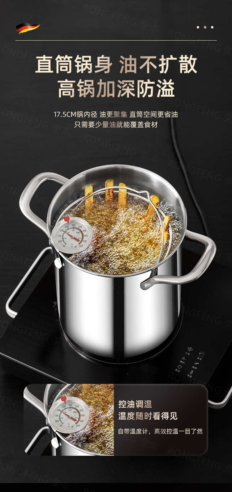18CM (5.5L) フライバスケット付き,18CM (5.5L) フライバスケットなし,304温度計(20cm),304 フードクリップ (12inch),304 揚げ箸(36cm)