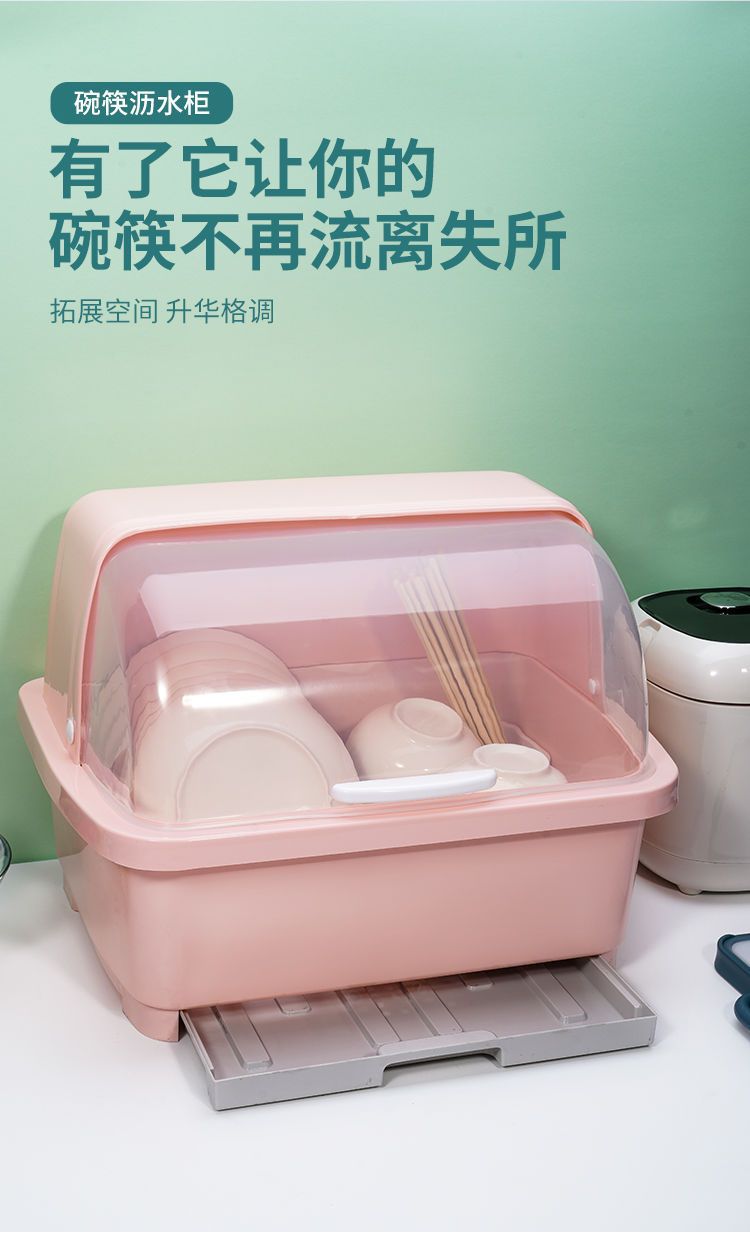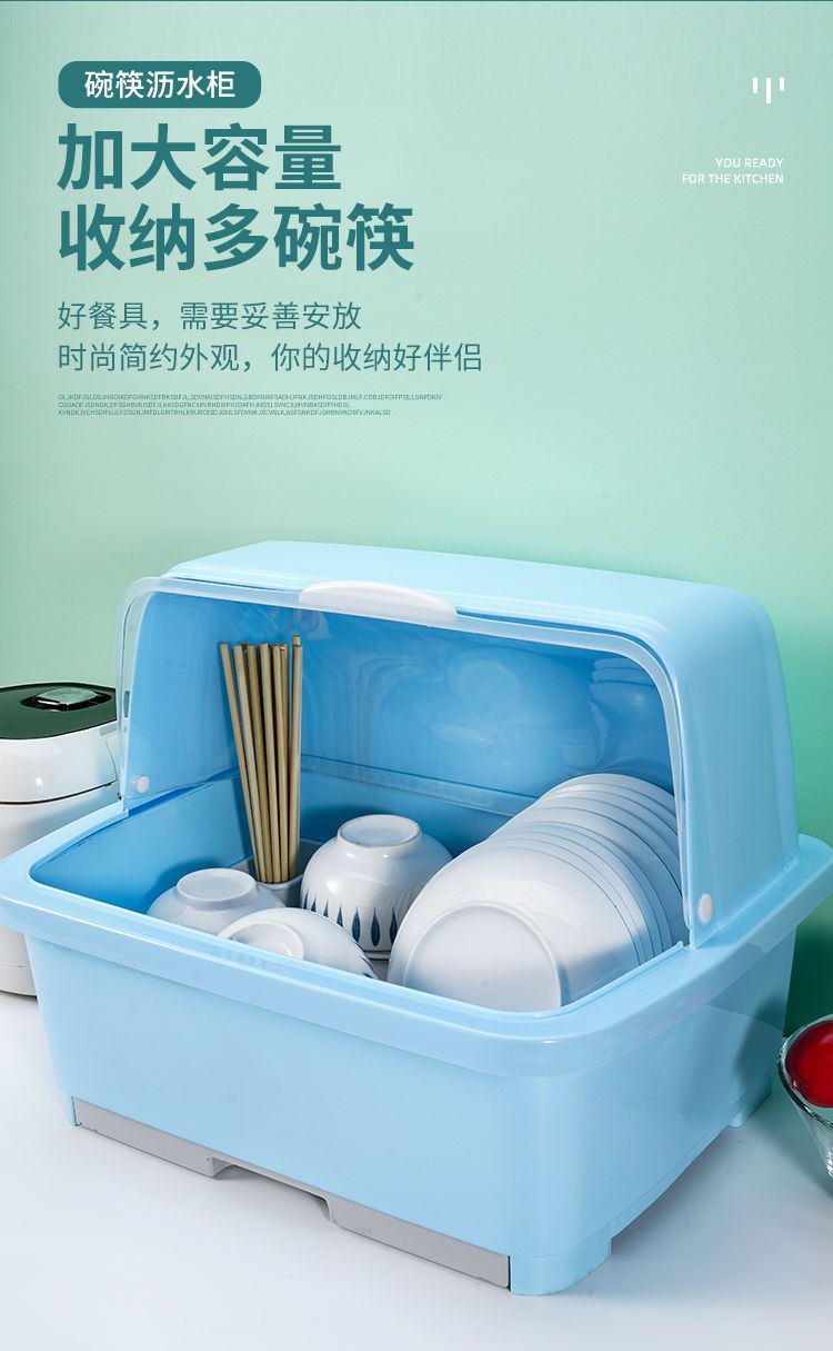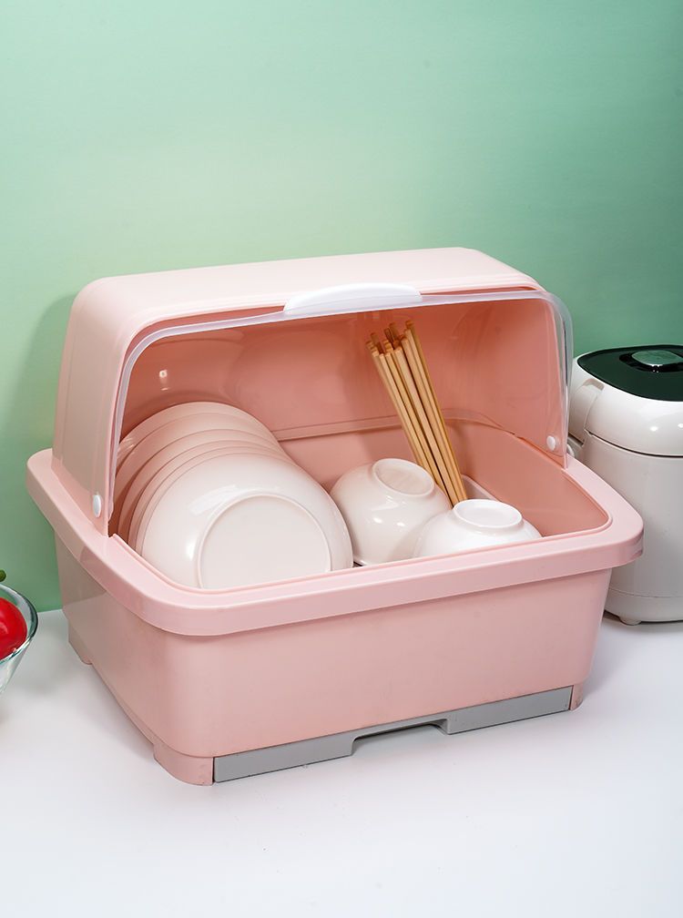 台所の大きいサイズのプラスチックの食器棚には蓋がついています。
