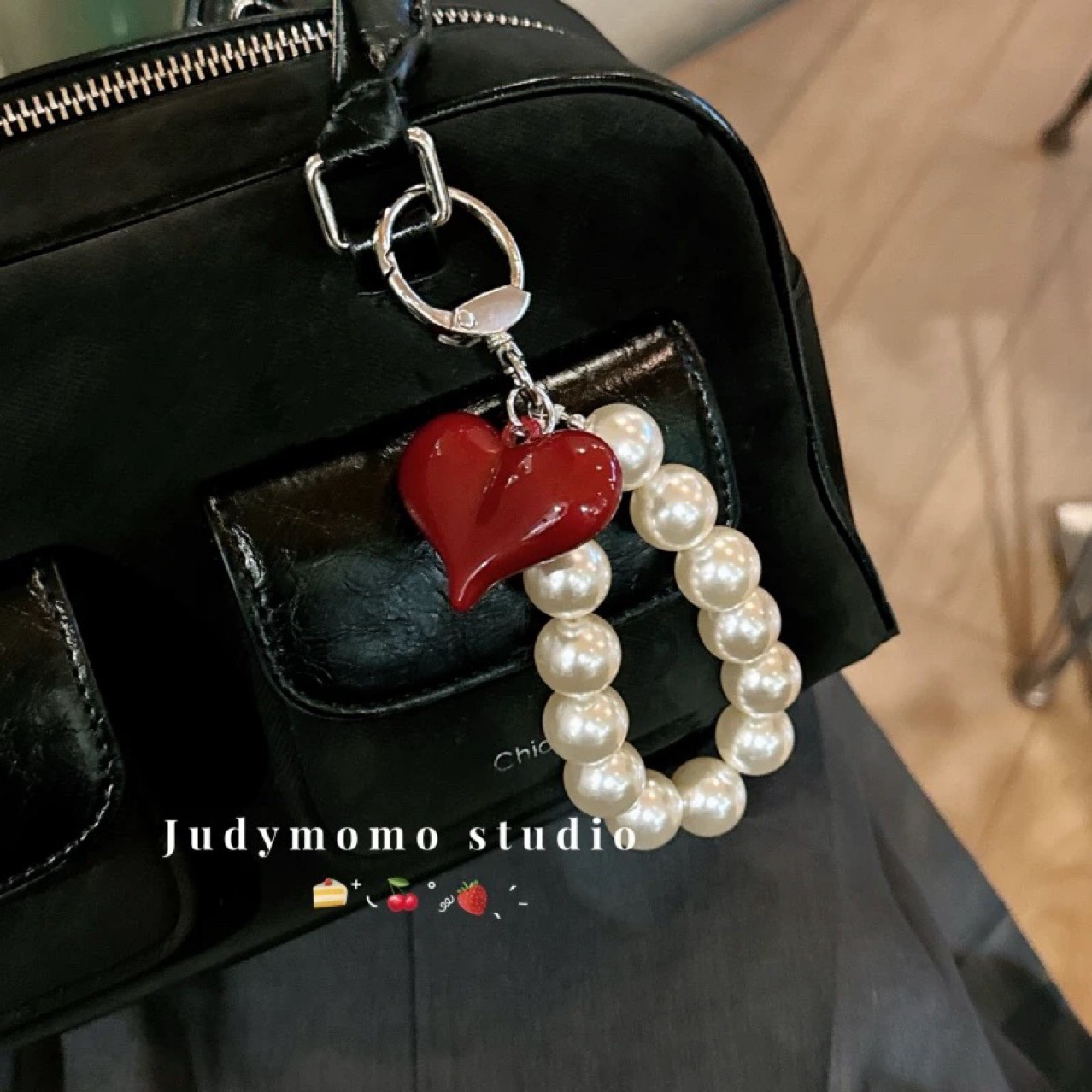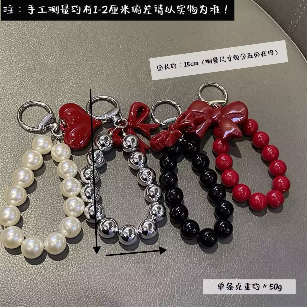 红爱心手机链黑串珠手提链手腕短挂绳手机壳钥匙扣包包挂件挂饰品
