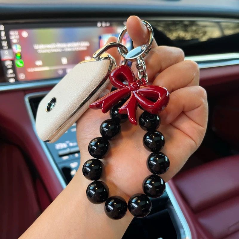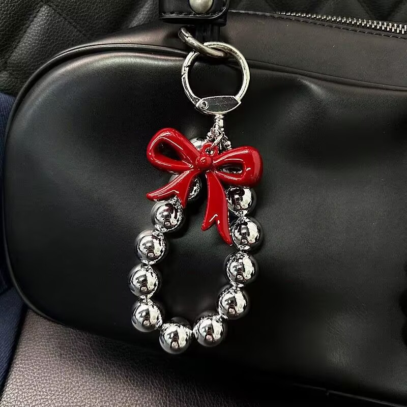 アンゴラの赤い蝶結びの携帯チェーンのビーズのキーホルダーのファッションのカバンのペンダントの自動車のキーチェーンの贈り物の卸売り