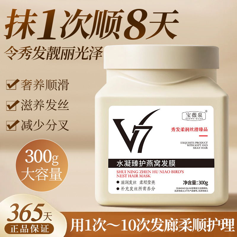 Baoweiquan V7 ツバメの巣ヘアマスク、焦げ毛の修復と改善、パーマや染めによるダメージヘア、蒸気フリーの逆マスクコンディショナー卸売