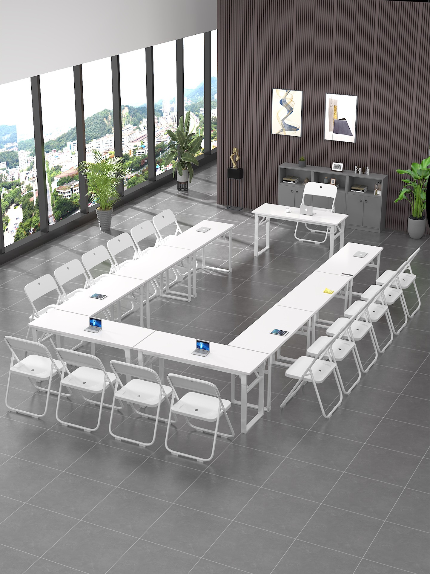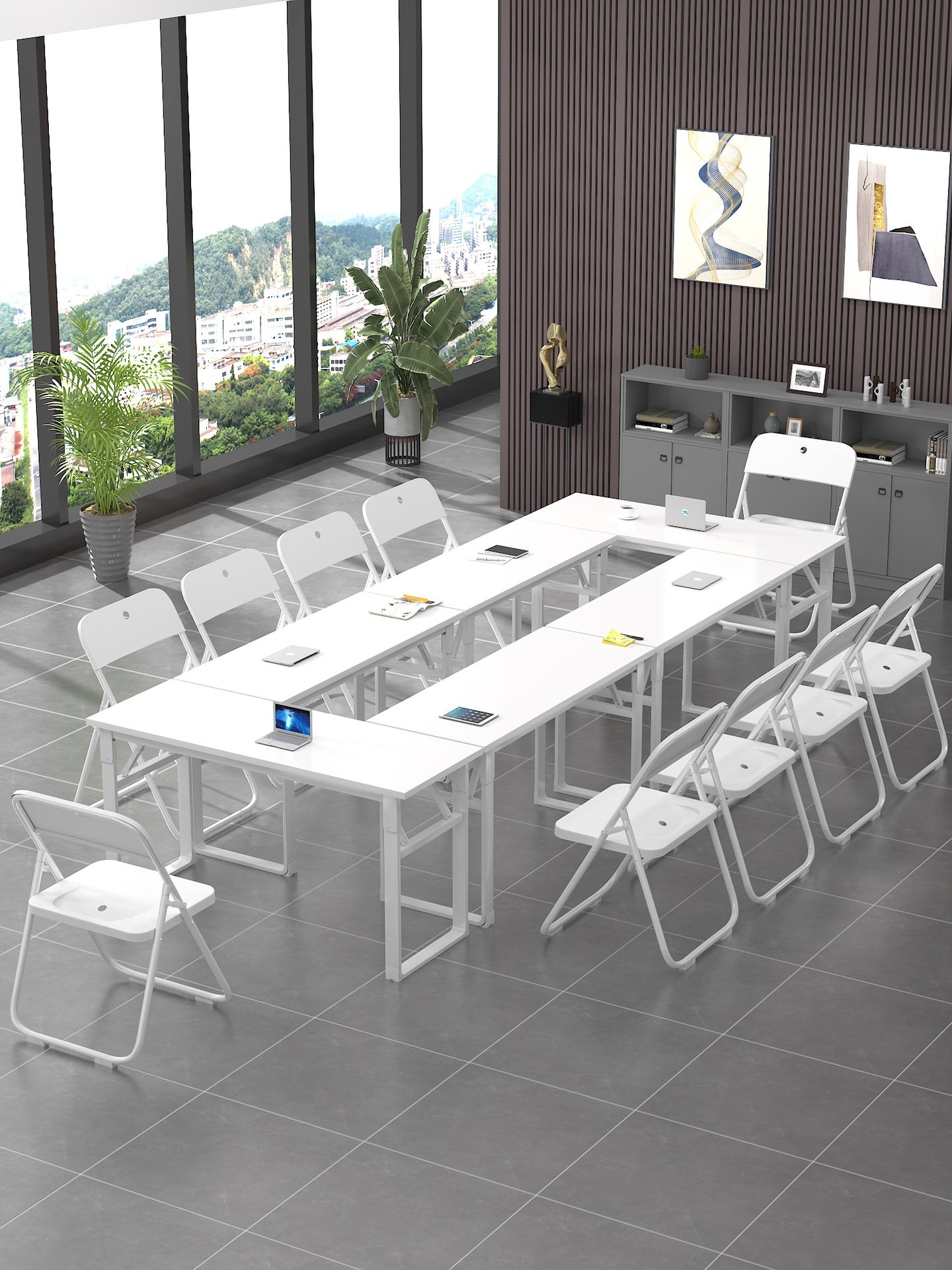 折りたたみ式トレーニングテーブル会議テーブルと椅子の組み合わせは移動可能で、多機能事務班長の二人の授業テーブルをつなぎ合わせます。