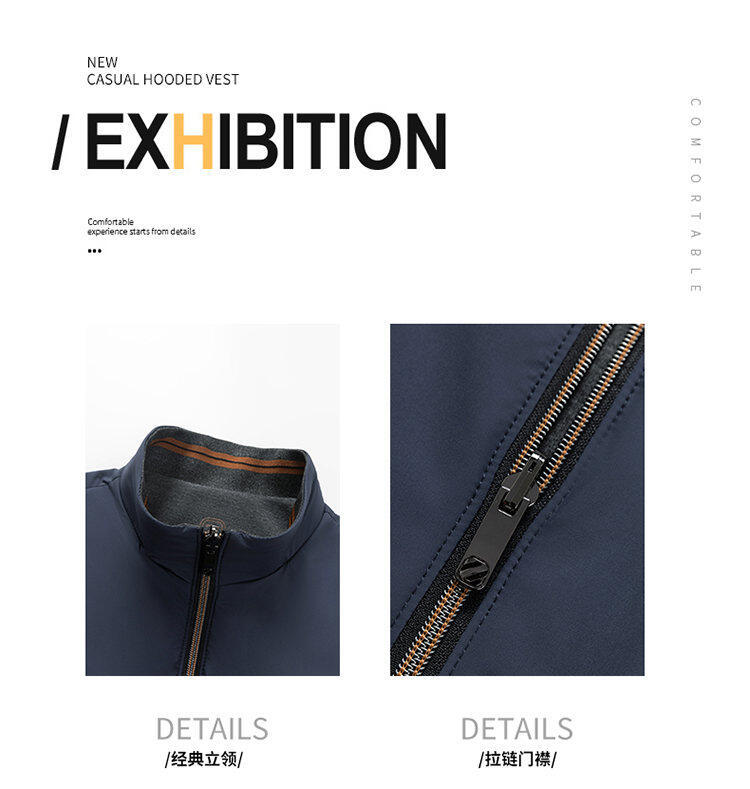 2024新型馬甲男性コートの中で青年ベストカジュアルな薄い綿男性は肩の両面に袖なしを着ている