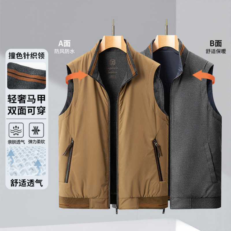 新しいベストメンズジャケット春と秋カジュアル屋外釣りベスト薄い綿ベスト両面ノースリーブトップ