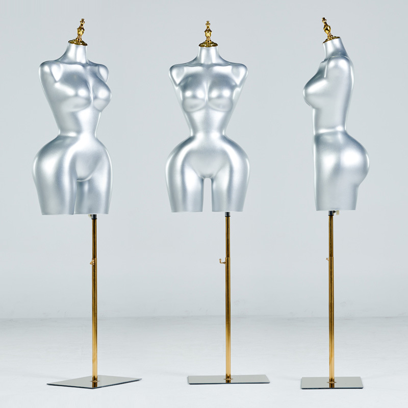 欧米の大きいサイズのカーダシアンのメッキの銀色の女性のモデルの大きい胸の半身の服装のショーウインドーのプラスチックのモデルの展示棚