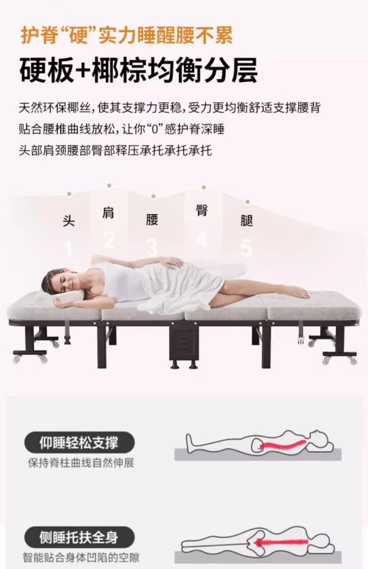 ソースファクトリーシングル折りたたみベッドホテル追加ベッド病院エスコートベッド肥厚スポンジマットレスポータブル昼寝アーティファクト