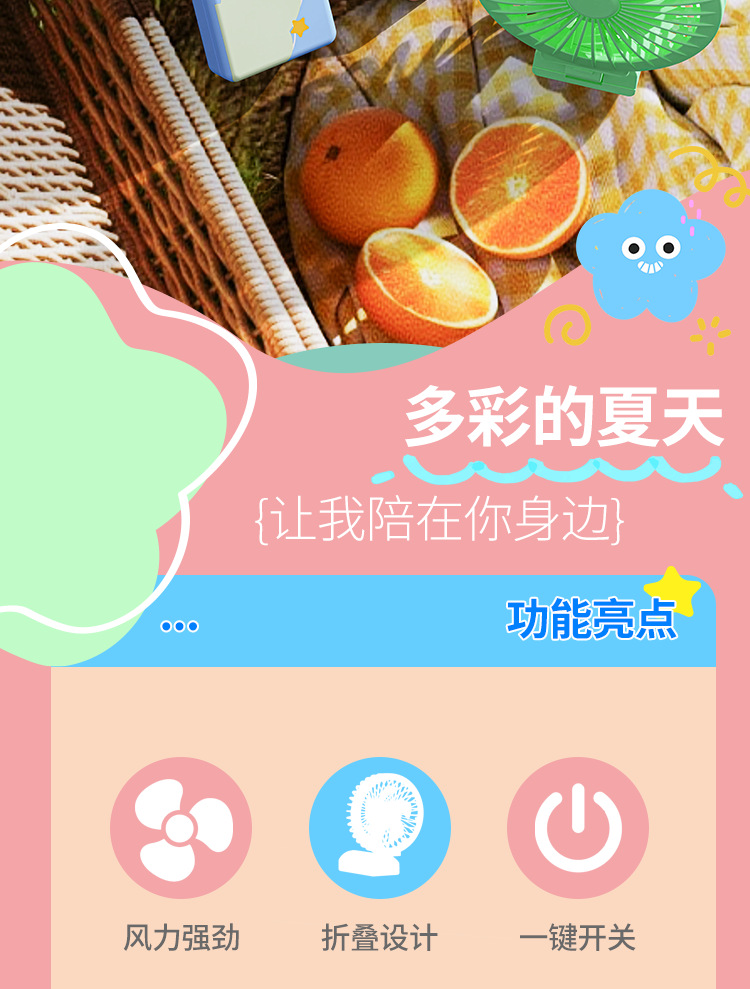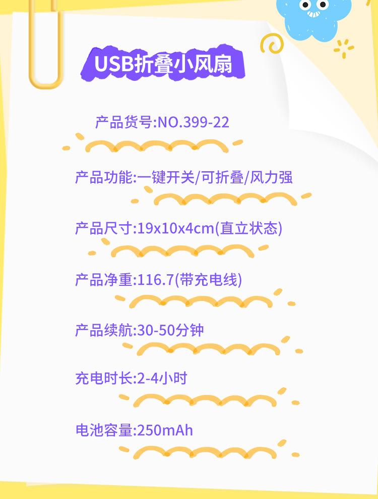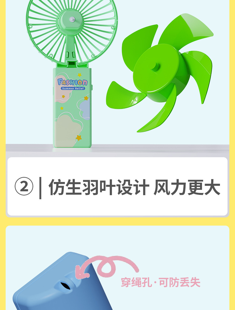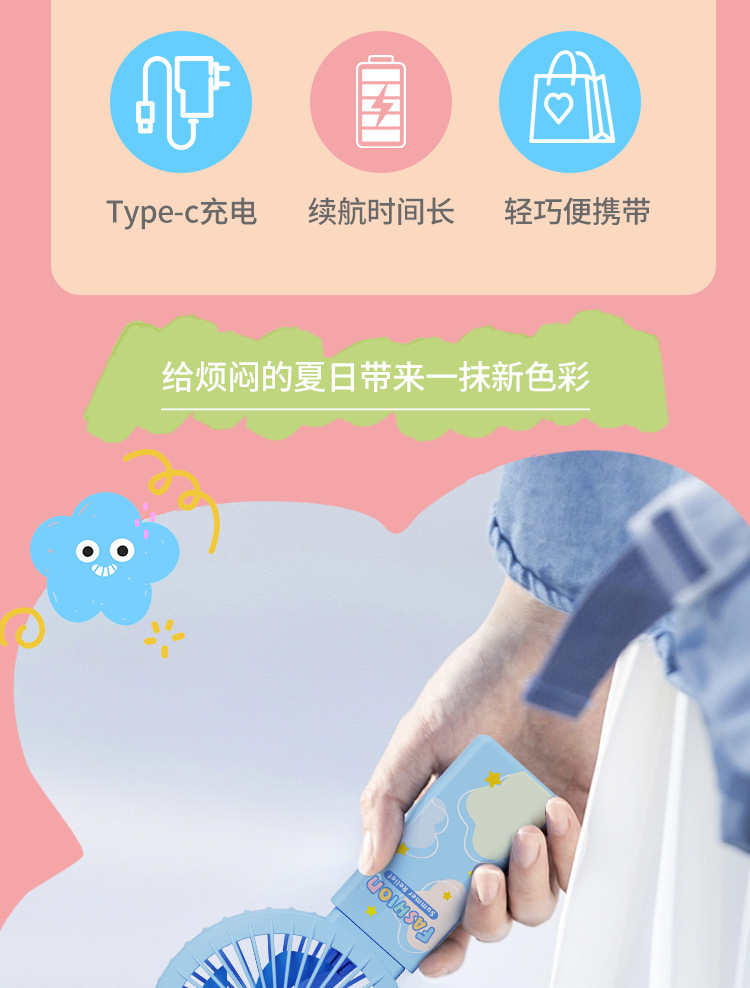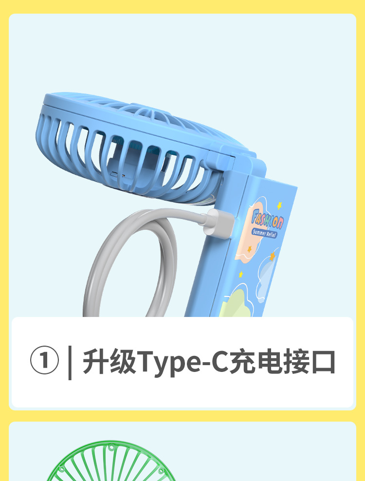 1 風力調整、Type-c 充電、バッテリー容量 400mAg、連続送風: 30-50 分