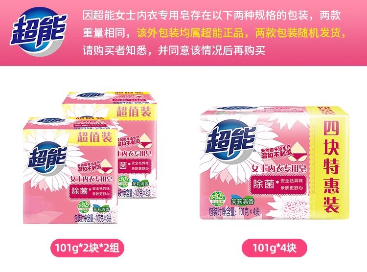 超能さん下着専用石けん101g * 4枚ジャスミン香型は異臭を取り除き、洗濯石けんを入れた