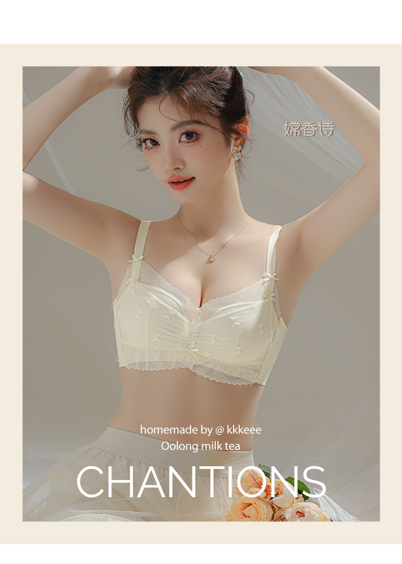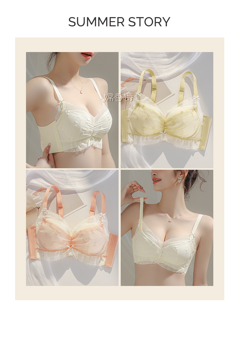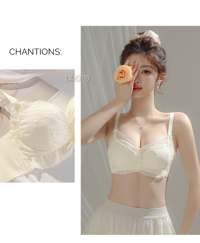 新款无痕内衣女聚拢无钢圈蕾丝少女文胸罩女调整型收副乳文胸