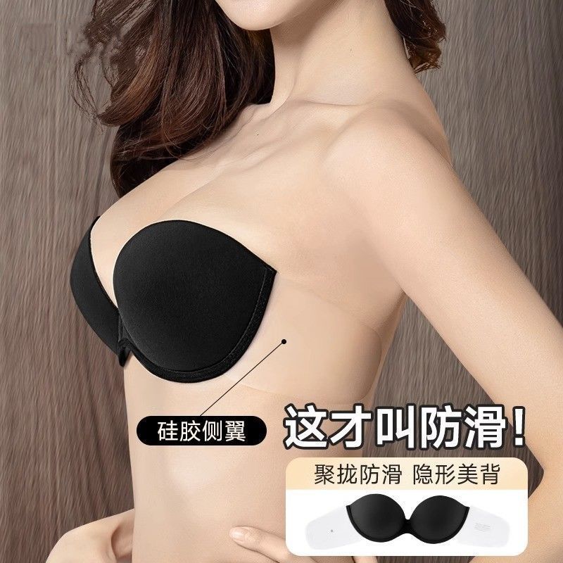 インビジブルバックレスディープVセクシーマンゴーカップシームレスプッシュアップU字型美背中下着ウェディングドレスブラホルターブラ