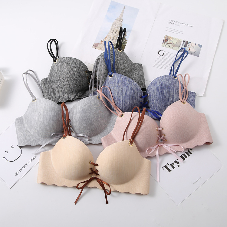 下着の女性の細い肩のベルトの前は三角の杯の超薄型の小さい胸を掛けて無鋼の輪の美背の夏のセクシーな文のブラジャーを閉じます。