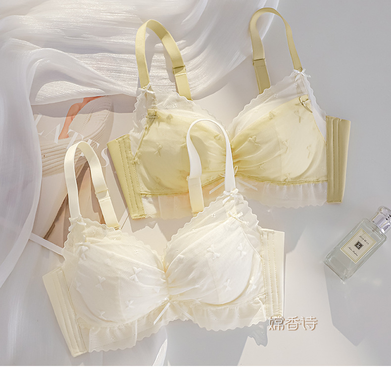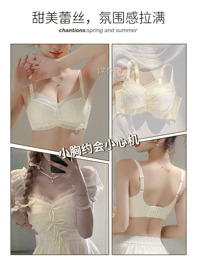 日系绑带蕾丝内衣女薄款无钢圈小胸聚拢上托防下垂甜美纯欲文胸罩