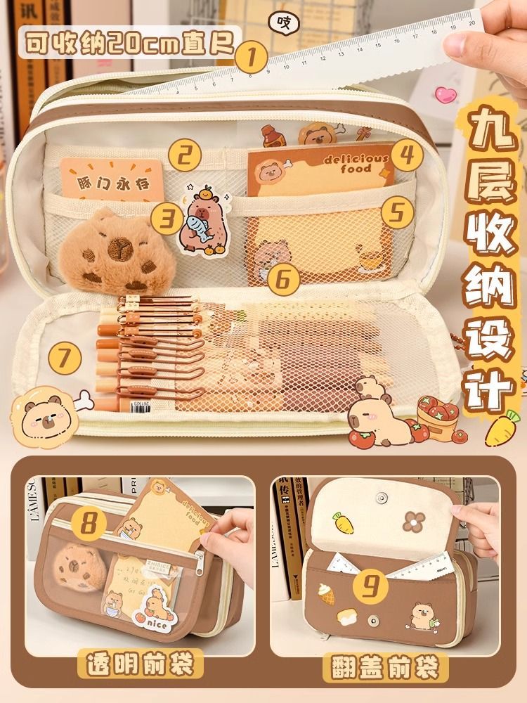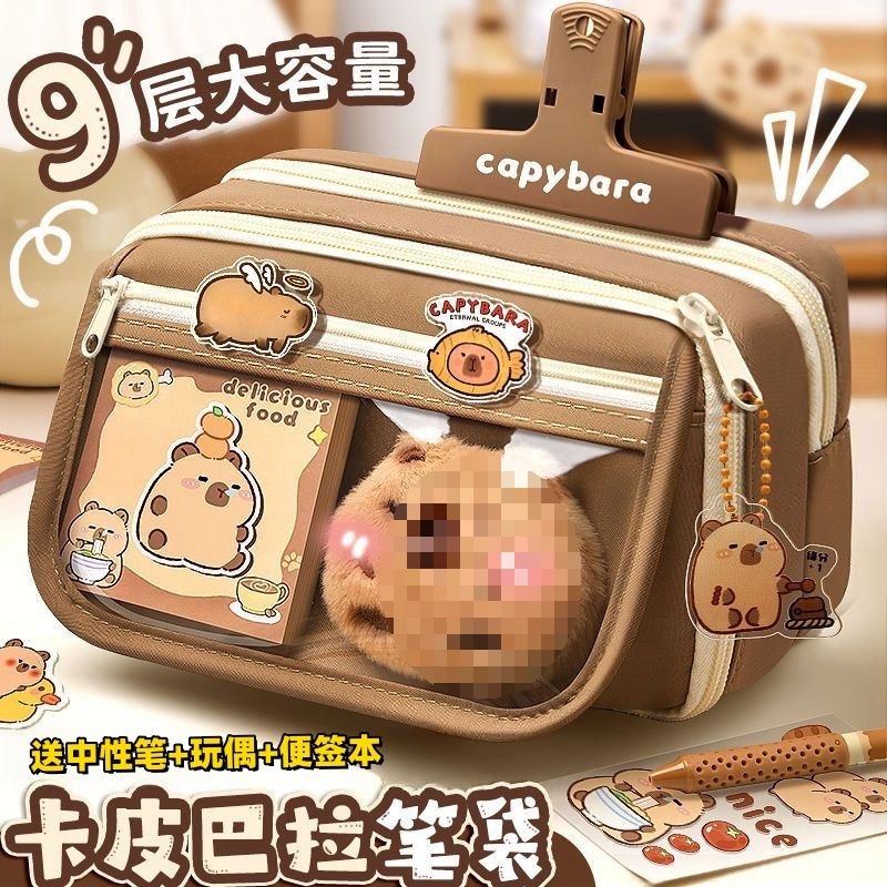 カピバラ9段大容量ペンポーチ高颜値中学生文房具女の子男の子汚れ耐性ペンポーチ铅笔ケース
