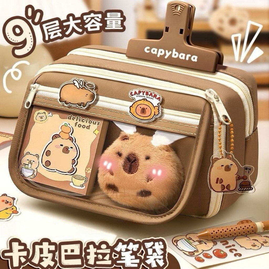 9層ペンケース 大容量 汚れにくい カピバラペンケース 多層 インス風ペンケース 個性的なデザイン