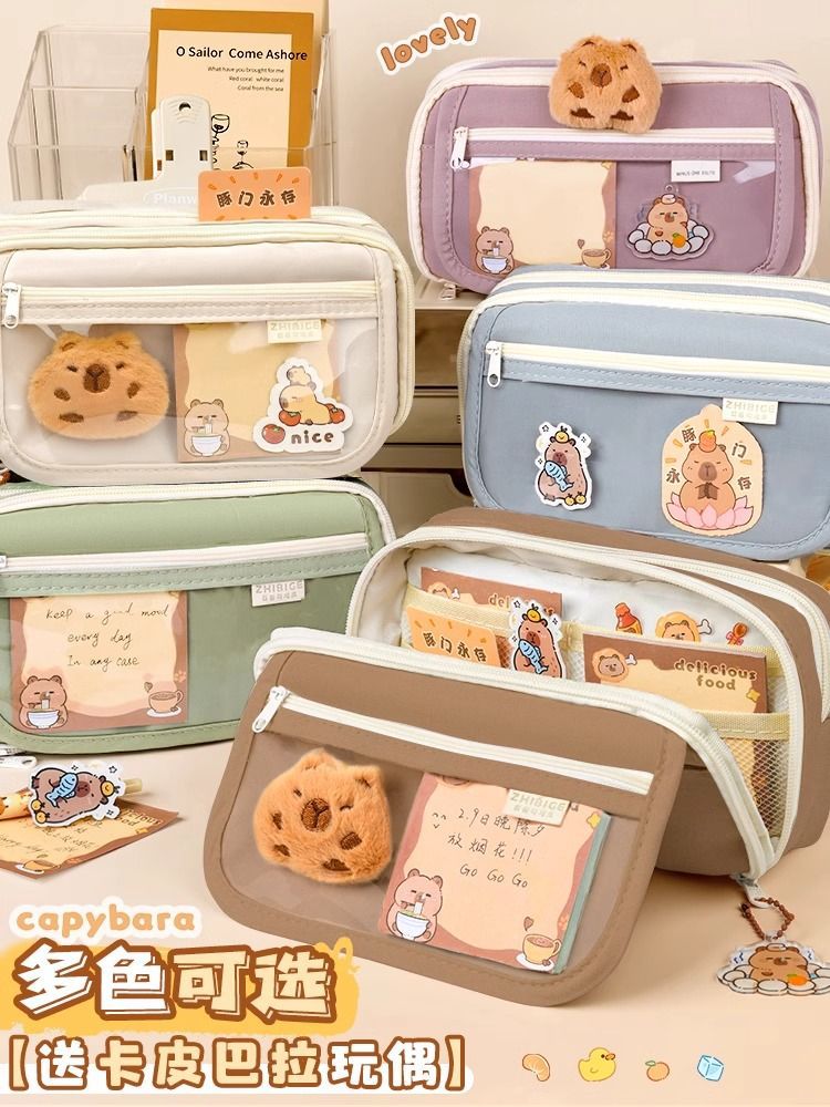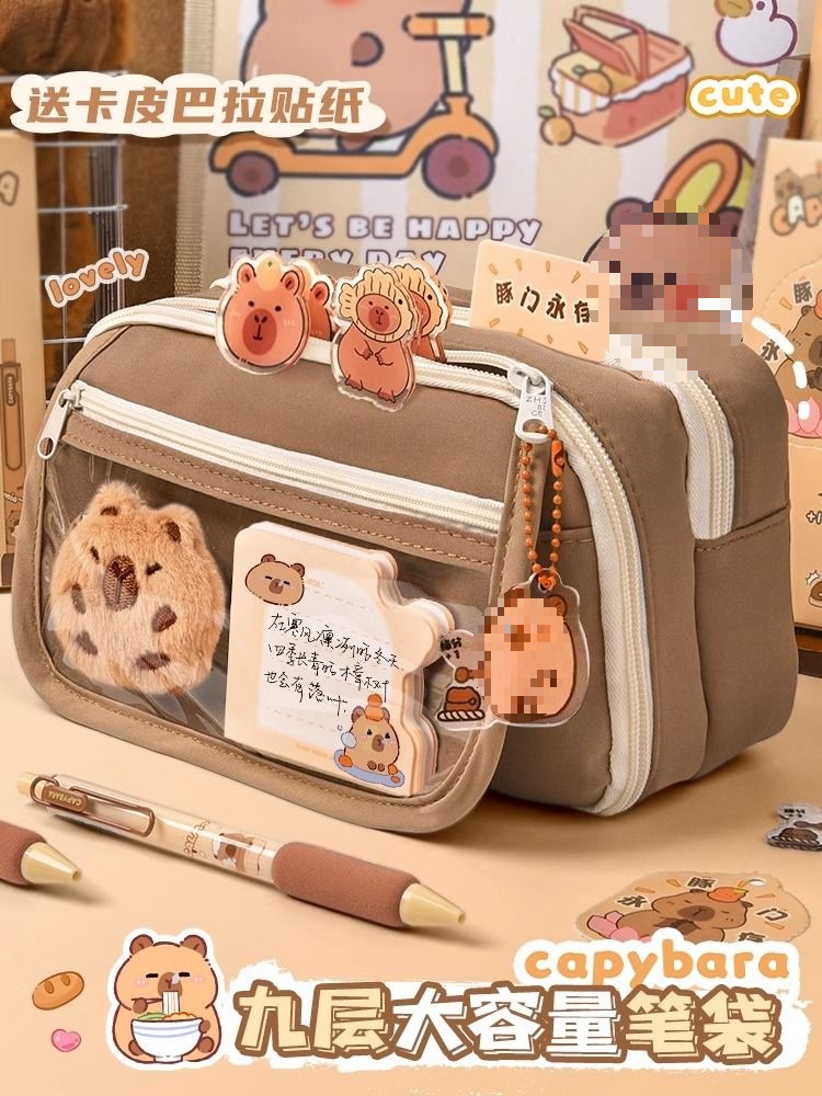 翻盖笔袋大容量耐脏卡皮巴拉铅笔袋笔袋小众不撞款透明九层文具袋
