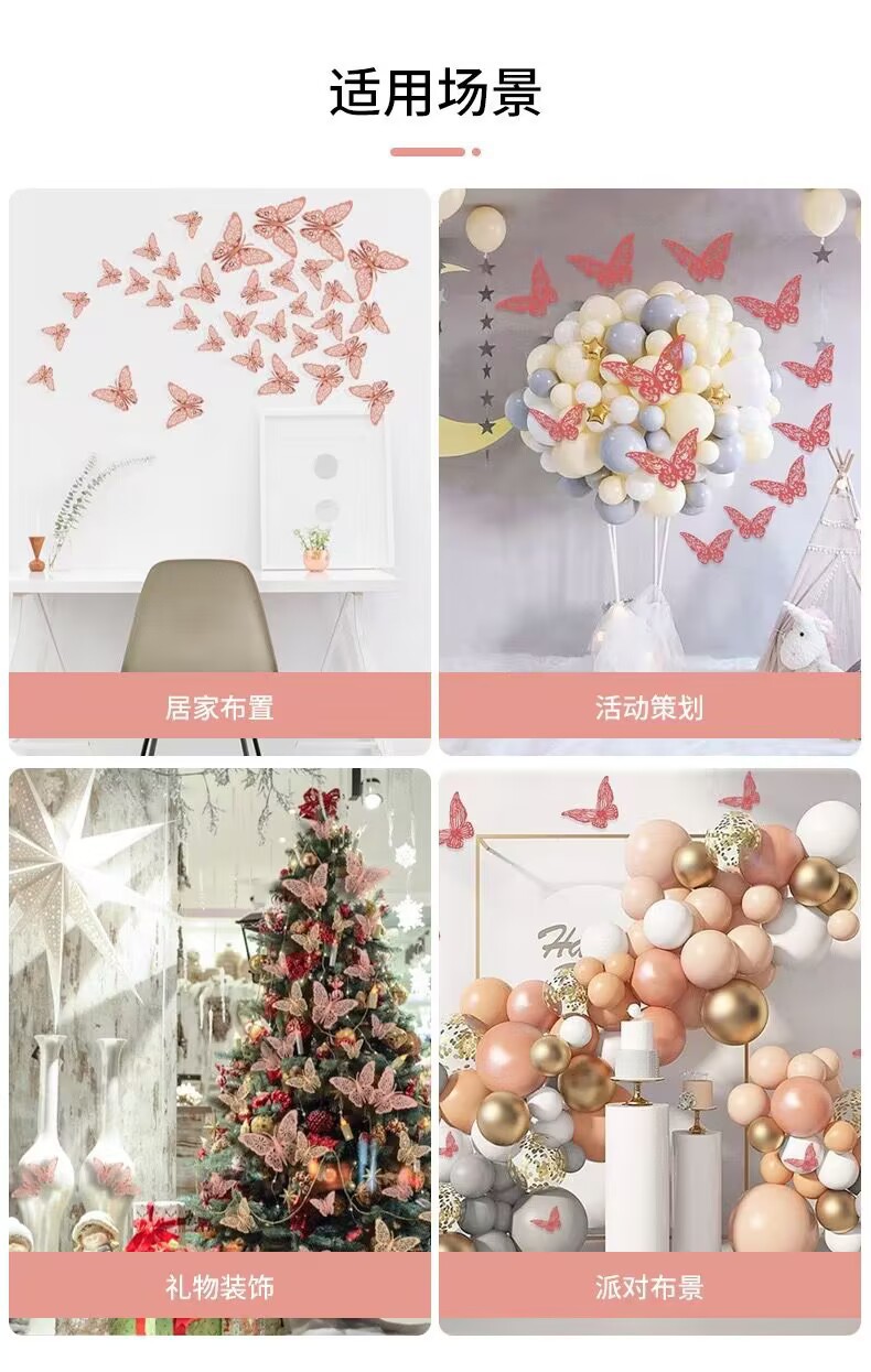 アマゾンPETメタル中空タイル蝶壁DIYフェスティバルパーティーベーキングデコレーションステッカー背景壁ステッカー