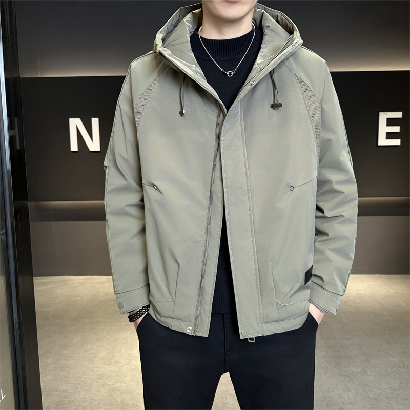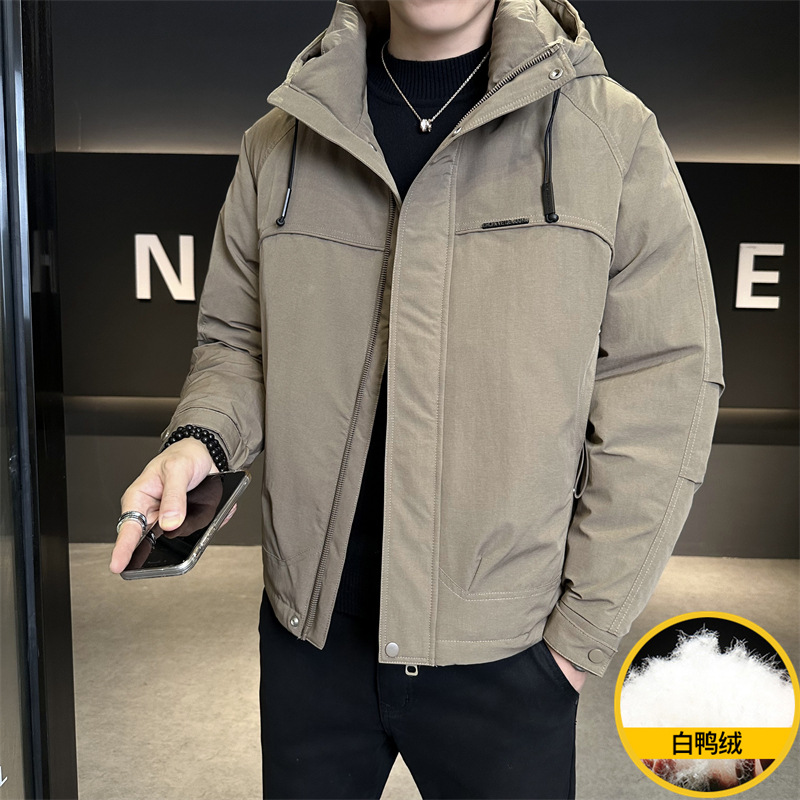 国标50高克重极寒男士冬季工装羽绒服连帽帅气鸭绒保暖夹克外套