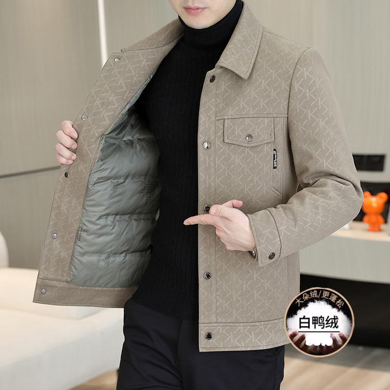 2025秋冬新款翻领鹅绒服男士轻薄羽绒服爸爸装外套黑色藏青色