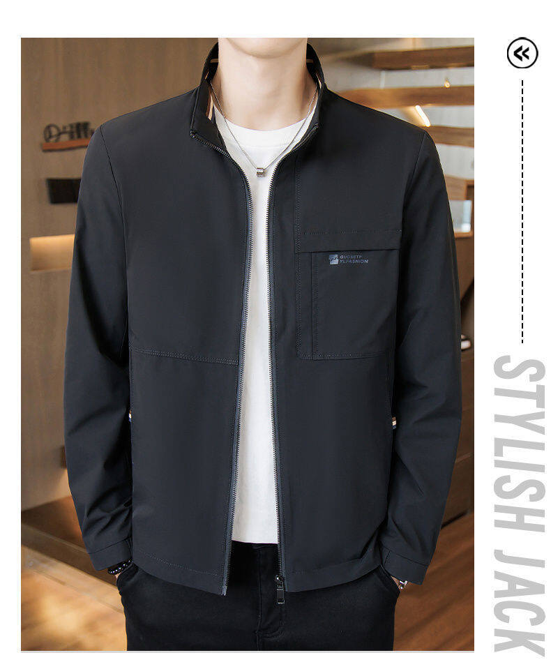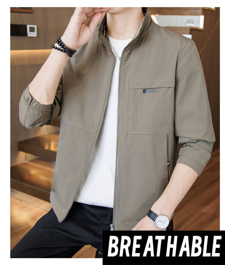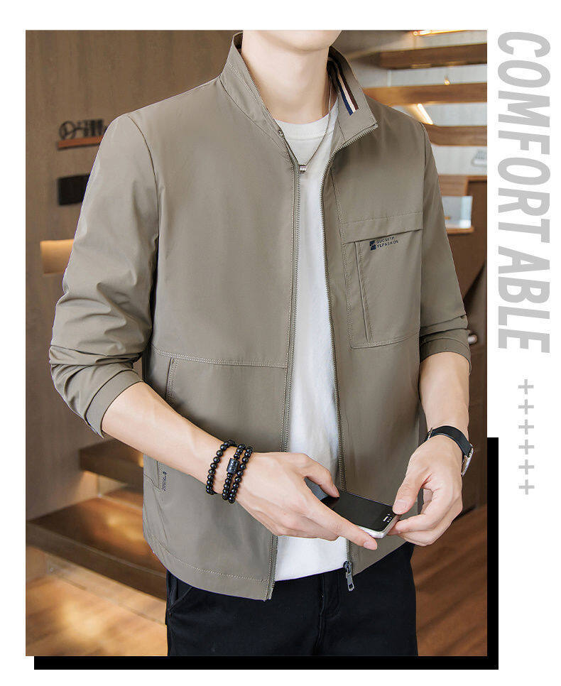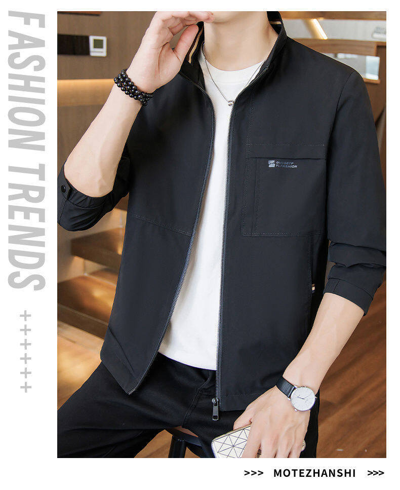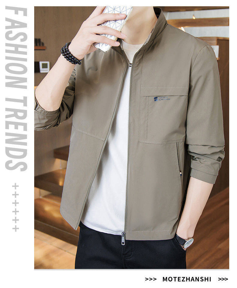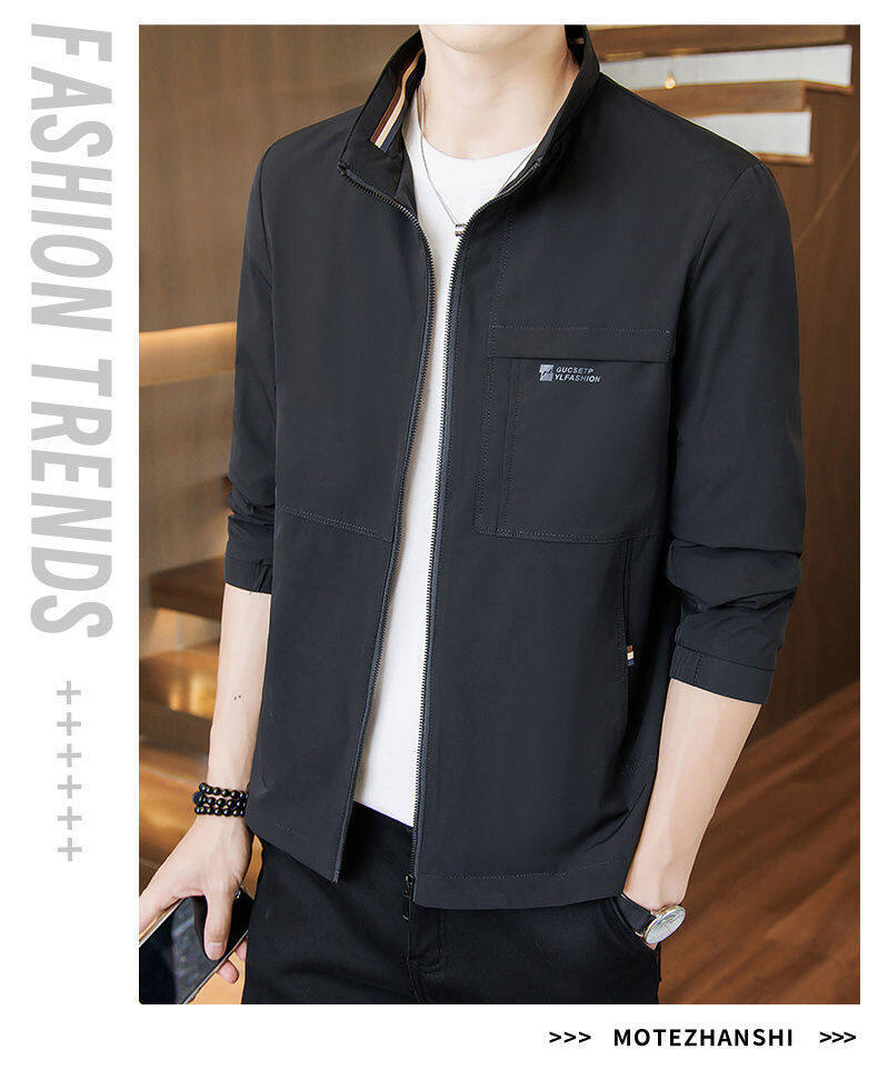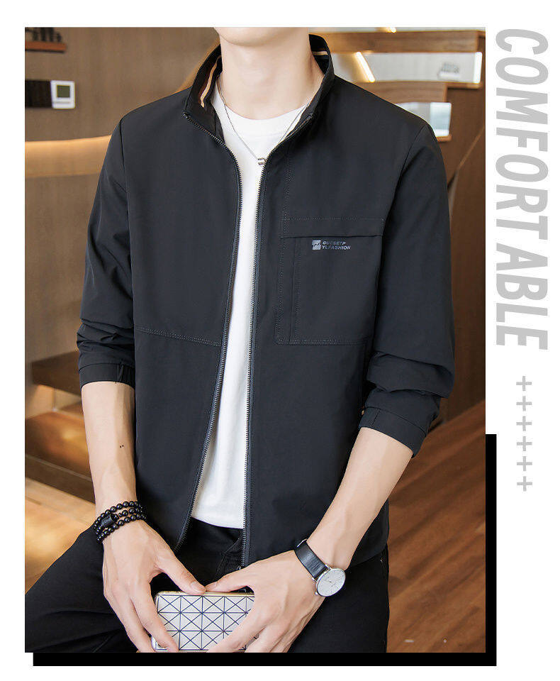 秋の新型シンプルな立襟カジュアルファッションコート男性百合上着