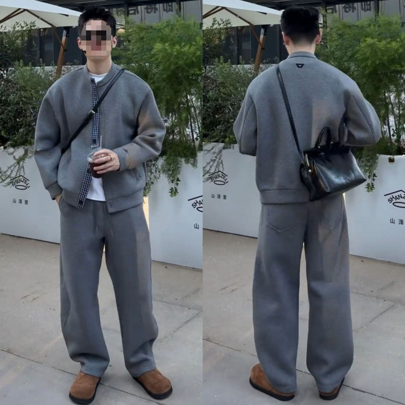 春秋新款感假两件时尚休闲套装男士慵懒风休闲外套卫裤两件套
