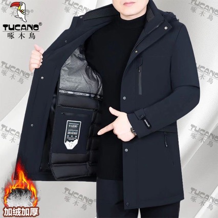啄木鸟羽绒服男士冬季中长款可拆卸内胆极寒鸭绒服石墨烯加厚外套