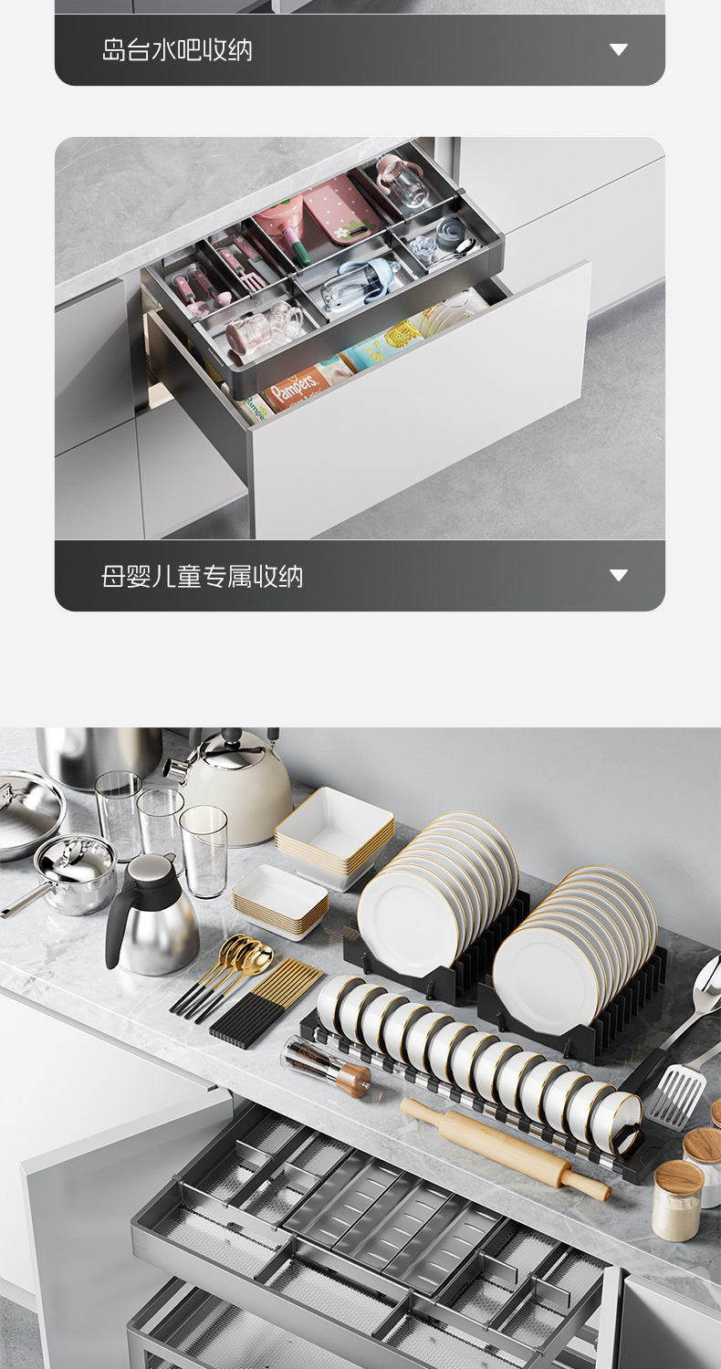 厨房橱柜拉篮三层家用太空铝不锈钢碗碟篮抽屉式收纳置物碗碟拉篮