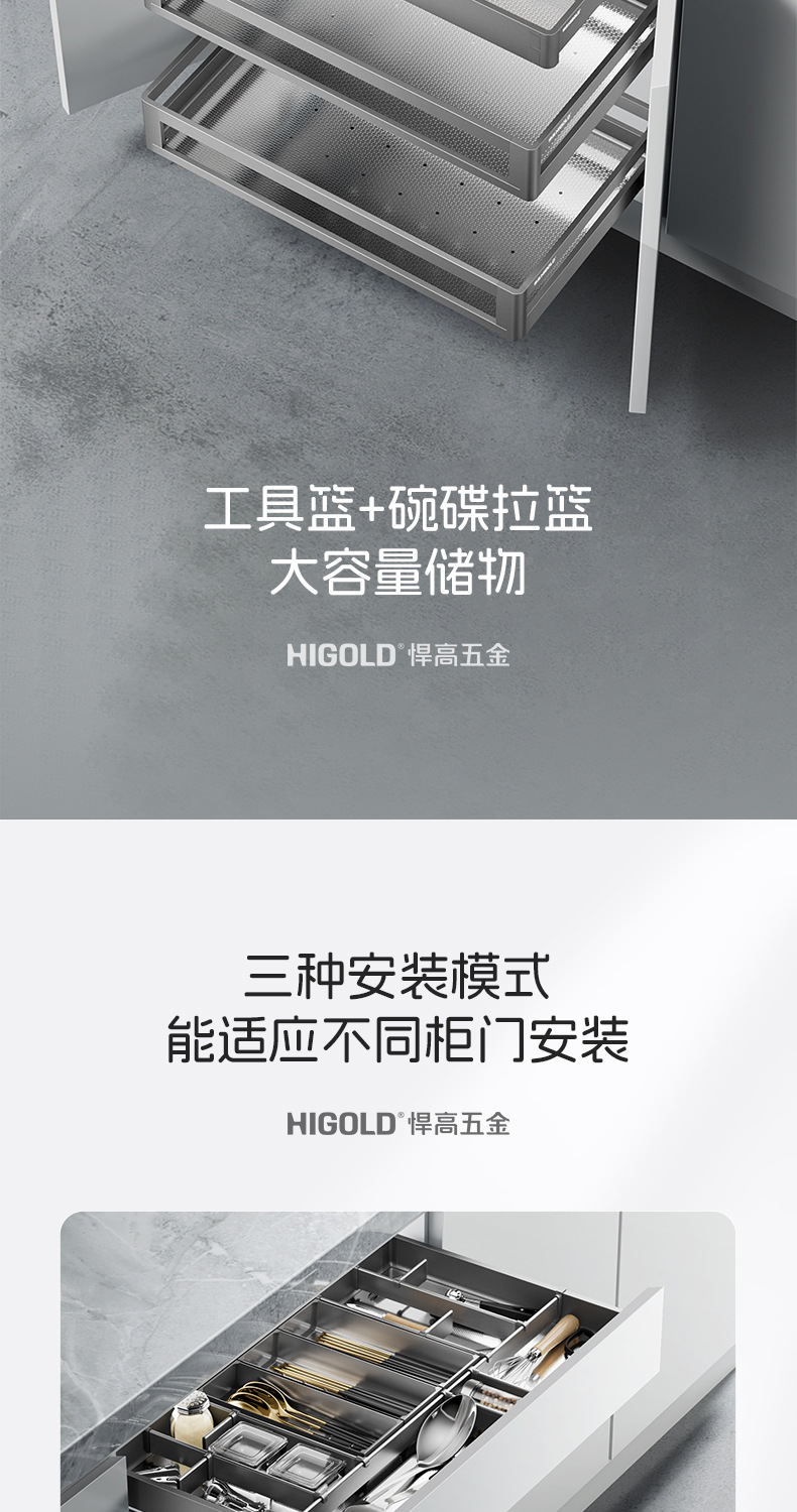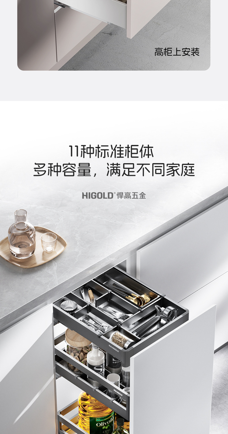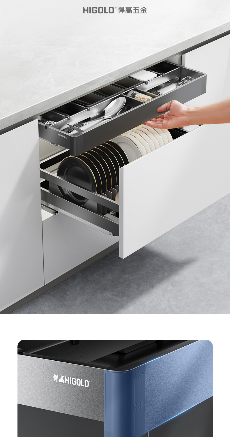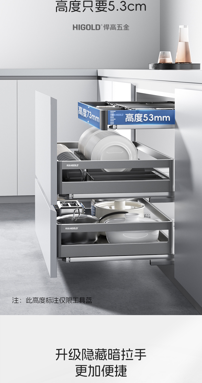 HIGOLD悍高希勒3.0mini碗碟篮平篮太空铝玻璃橱柜悍高拉篮