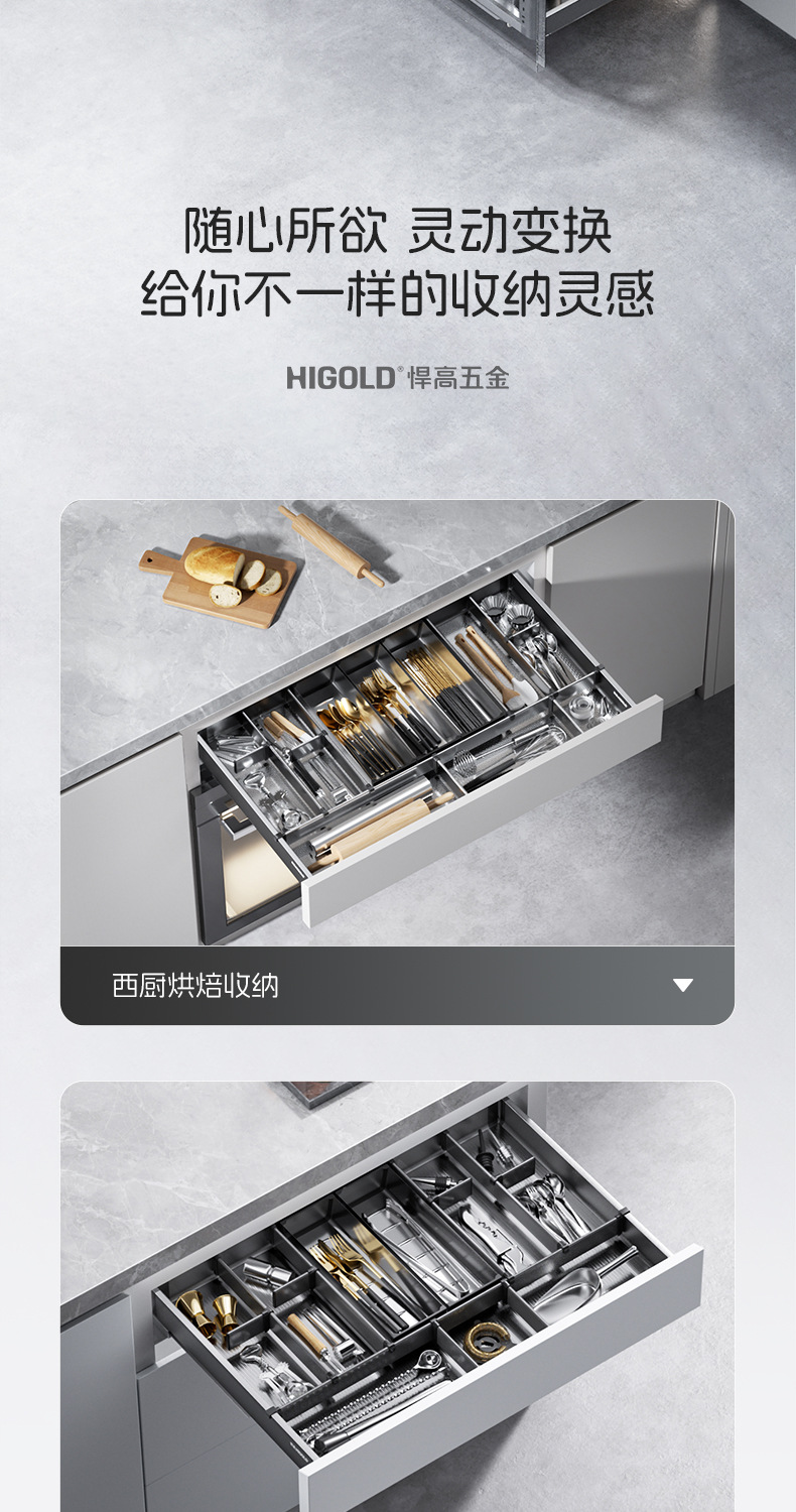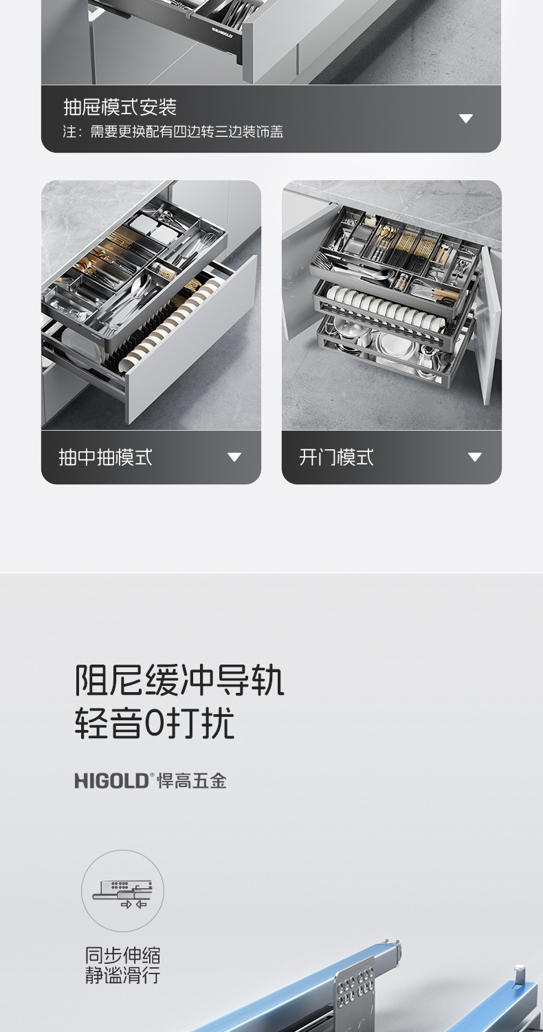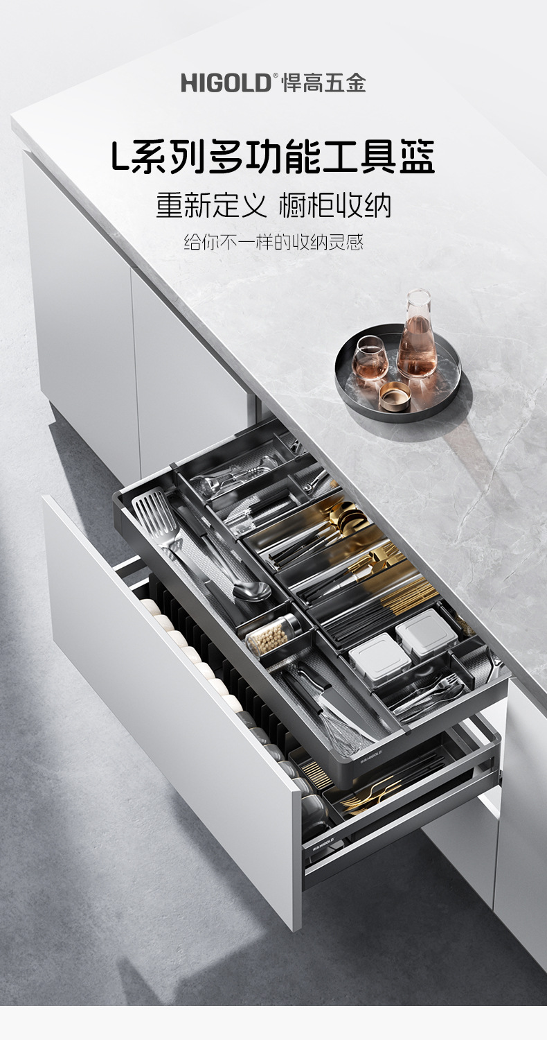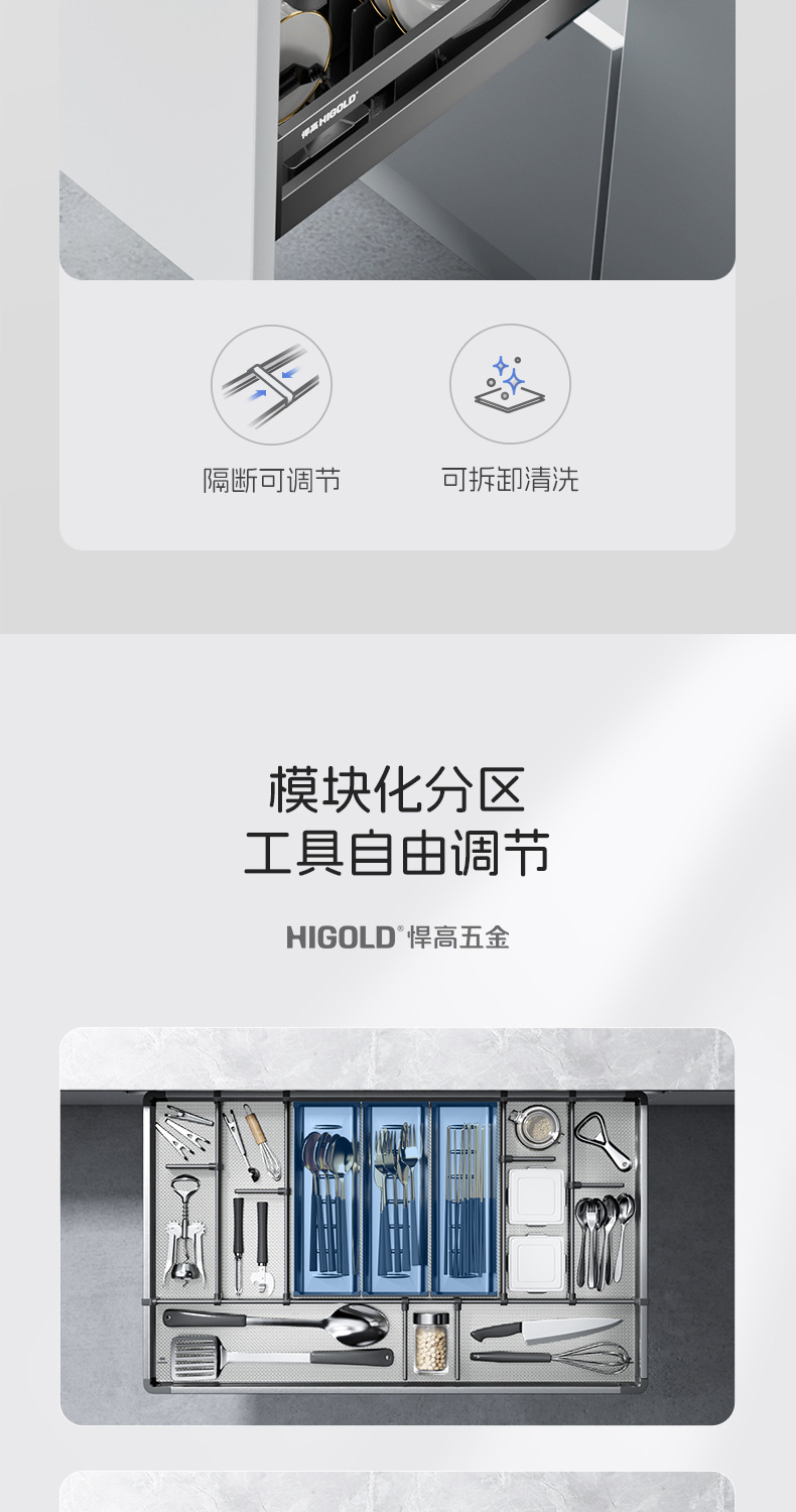 HIGOLD悍高希勒3.0mini碗碟篮平篮太空铝玻璃橱柜悍高拉篮